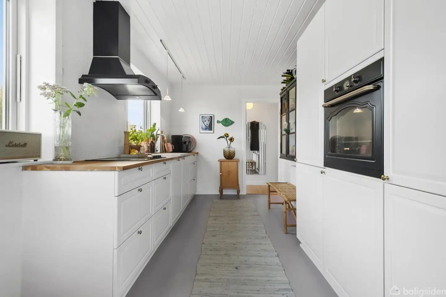 Velkommen til Parkvej 180 - Denne skønne villa byder på 90 m² i stueplan, 48 m² på førstesalen og en carport på 20 m² med integreret skur til opbevaring af haveredskaber eller cykler. Her bor du tæt på det hele – indkøb, legepladser, bager, pizzaria, fitness og blot 1 km fra stranden. Boligens hjerte er det hyggelige køkken med emhætte, kogeplader og ovn fra Gorenjes retro-serie. De store vinduer giver et skønt lysindfald og udsyn til forhaven. Stueplanen rummer desuden et stort forældresovevæ