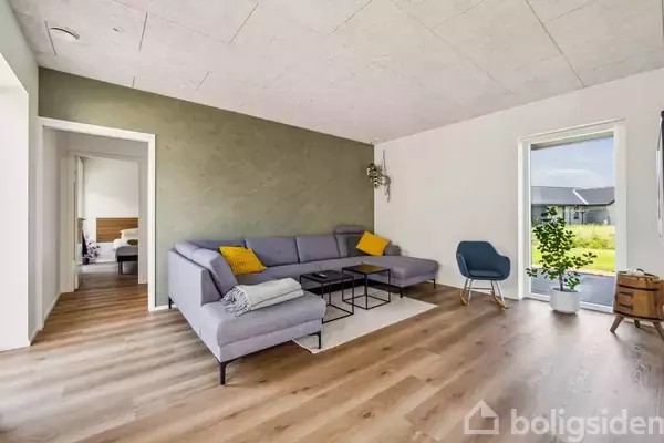 Hvis du drømmer om at bo nyt, lækkert og funktionelt på en attraktiv beliggenhed med skole og daginstitution inden kort rækkevide - Så er huset her på Peder Hausgaards Vej 42 et oplagt valg. Her får du en bolig opført i 2022, en bolig hvor alt spiller 100% og hvor det er helt tydeligt at sælger ikke har gået på kompromis med noget som helst, da de lod ejendommen opføre.Den flotte funkisstil med det gennemgående udhæng, danner referencer til de smukke 60'er og 70'er villaer der ofte blev opført m