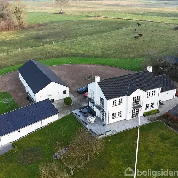 Åbent hus med tilmeldingskrav 9/3 - klik på billede - På Pederslundsvej 9 udbydes en bolig, hvor rammerne er noget ud over det sædvanlige. Her får I en indbydende og velholdt bolig med en god og velfungerende planløsning i to plan, suppleret af et anvendeligt anneks samt en imponerende garage-/værkstedsbygning med masser af muligheder. Helheden fremstår gennemført og stilren med klassiske sprossevinduer, flotte materialevalg og et skønt lysindfald, der følger jer fra rum til rum og giver en let, indbydende atmosfære. Boligens opholdsrum samler sig omkring det store køkken/alrum med et stilrent køkken i hvide elementer, god bordplads og masser af opbevaring – et naturligt samlingspunkt i hverdagen såvel som til gæster. Den åbne forbindelse til spisepladsen og de store vinduespartier giver et skønt lysindfald og åbner rummet smukt op mod de grønne omgivelser, så inde- og udeliv smelter naturligt sammen. I forlængelse heraf ligger en indbydende stue med plads til både sofahjørne og hyggekroge, hvor pejsen skaber varme og stemning i de køligere måneder, mens dobbeltdøre leder jer direkte ud til terrassen og udelivet. I stueplan findes desuden en lys hall, badeværelse, entré og et stort kontor med mulighed for opdeling til to værelser. Boligen byder samtidig på en række lækre, moderne detaljer, der løfter hverdagskomforten mærkbart. Her kan blandt andet fremhæves gulvvarme i hele huset samt et BWT-anlæg, ligesom der er etableret ventilationsanlæg på hele førstesalen samt i badeværelset i stueetagen. På førstesalen får I endnu et opholdsrum, der egner sig perfekt som lounge eller tv-stue. Etagen byder på dejligt udsyn til omgivelserne og rummer desuden to gode værelser samt et forældresoveværelse med tilhørende walk-in-closet, så der er tænkt over både komfort og funktionalitet. Etagen fuldendes af et lækkert badeværelse med både badekar og separat bruseniche. Som en ekstra kvalitet får I et anneks, der åbner for mange anvendelsesmuligheder. Her er en hyggelig stue med loft til kip, et værelse samt wc – oplagt til gæster, hjemmekontor, hobby eller en selvstændig teenageafdeling. Endelig fuldendes ejendommen af en stor garage-/værkstedsbygning, som fremstår lys, rummelig og yderst anvendelig. Her er plads til biler, motorcykler, trailer og alt det pladskrævende. Som ekstra plus er der badefaciliteter i bygningen, og der er gulvvarme i garage-/værkstedsbygningen, hvilket gør den ekstra anvendelig året rundt. ______________________________________________________________________ Tjek Boliglån https://www.raadtilpenge.dk/Gode-raad/boliglaan/landingsside
