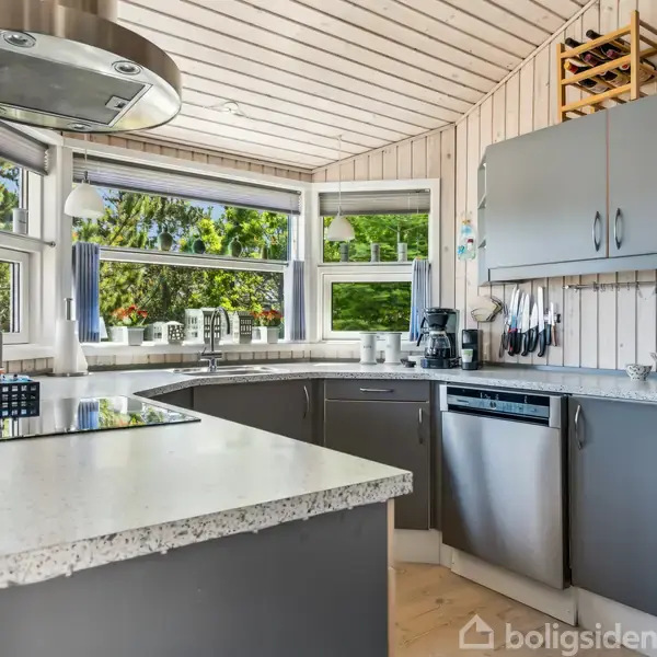 Dette lækre fritidshus fra 2004 byder på en fremragende beliggenhed midt i det smukke klitlandskab, tæt ved Kattegats kystlinje. Her får du en rolig og naturskøn oase, hvor det er let at finde ro og fordybelse – samtidig med, at du er i kort afstand til både Skagens stemningsfulde gader og Ålbæks hyggelige butiksliv.Huset har en praktisk entré med vaskemaskine, hvorfra man træder direkte ind i et stort og lyst køkken-alrum med loft til kip og masser af atmosfære. Alrummet går i ét med opholdsstu