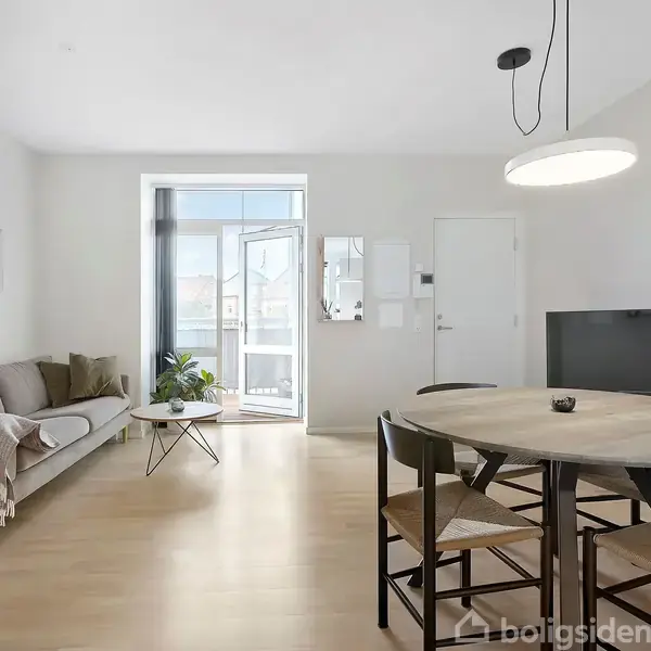 Åbent hus med tilmeldingskrav 11/2 - klik på billede - Velkommen til Petersborgvej 53, st. th, en velholdt og indbydende lejlighed på 59 m² med en overskuelig planløsning og et nutidigt udtryk. Boligen fremstår lys og veldisponeret og egner sig godt til køber, der ønsker en funktionel bolig med en beliggenhed tæt på byen, og med den praktiske fordel, at der medfølger egen privat parkeringsplads i ejendommens gård. Lejlighedens indretning er enkel og funktionel med en god sammenhæng mellem rummene. Køkken og stue er samlet i ét opholdsrum, som giver fine rammer om hverdagen. De store vinduespartier sikrer et behageligt lysindfald og bidrager til en åben rumfornemmelse. Køkkenet fremstår lyst og pænt med gode arbejdsflader og integrerede hårde hvidevarer og er indrettet med fokus på en praktisk hverdag. Soveværelset har en god størrelse og er let at indrette med både seng og opbevaring. Rummet fremstår lyst og enkelt og giver en naturlig opdeling mellem opholdsrum og soveafdeling. Dertil er der gode opbevaringsmuligheder i form af de indbyggede skabe. Badeværelset er udført i lyse materialer og fremstår velholdt med bruseniche og gode opbevaringsmuligheder. Indretningen er enkel og funktionel og passer naturligt til resten af boligen. Fra opholdsrummet er der adgang til en overdækket altan, som giver mulighed for at etablere et mindre uderum med plads til cafésæt og ophold i de varmere måneder. Lejligheden er udstyret med gulvvarme i hele boligen, hvilket sikrer en behagelig komfort og et rent udtryk uden synlige radiatorer. Ejendommen huser kun 6 ejerlejligheder, som skaber et privat, sikkert og roligt miljø. Til lejligheden medfølger egen privat parkeringsplads i gården, en særdeles attraktiv fordel i området. Ejendommen er beliggende på Petersborgvej i et roligt byområde med kort afstand til Aalborg centrum, indkøb, grønne områder og offentlig transport. Beliggenheden giver en god balance mellem byliv og rolige omgivelser og gør hverdagen nem og fleksibel. Samlet set er der tale om en velindrettet og indflytningsklar lejlighed med altan og gulvvarme, beliggende tæt på byen og med egen parkering.
