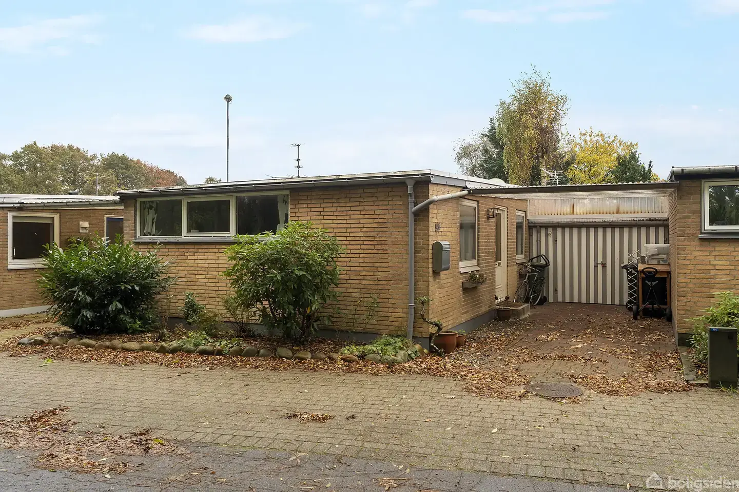 Velkommen til dette hyggelige og centralt beliggende rækkehus med en planløsning, der fungerer perfekt til både den enlige, parret eller den lille familie. Her er der tænkt praktisk, uden at gå på kompromis med atmosfæren. Rækkehuset har også for nyligt fået skiftet tag. Fra carporten træder I ind i en entré, der leder videre til en gang med indbyggede skabe og adgang til husets badeværelse og to gode værelser. Køkkenet ligger centralt i hjemmet og er åbnet op mod stuen, hvilket skaber et åbent