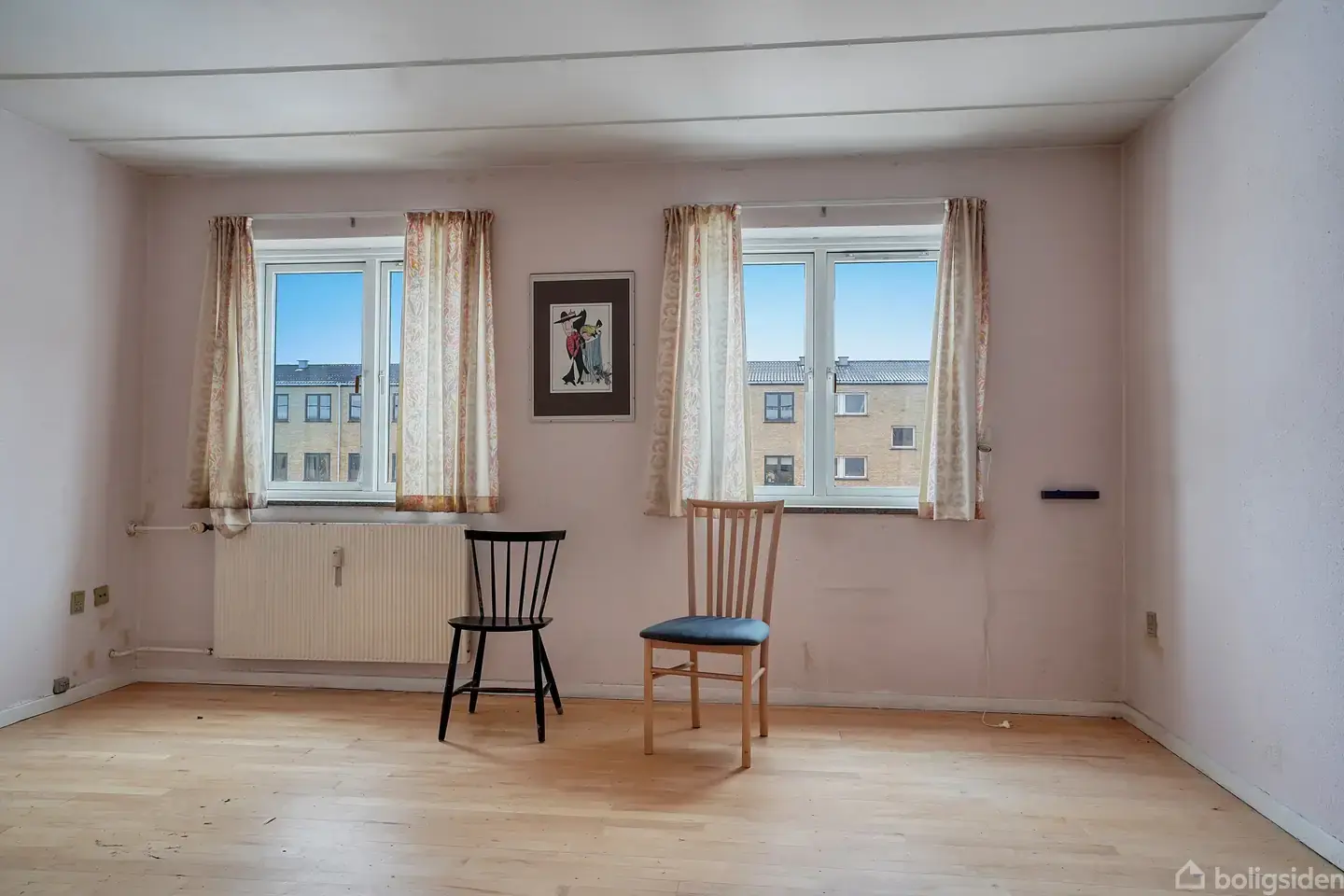 2 værelses på 1.sal med udsigt Velkommen til denne lyse og rummelige 2-værelses lejlighed på Pilegårdsvej 38, 1.tv. – en bolig med masser af potentiale for dig, der ønsker at sætte dit eget præg.Lejligheden er attraktivt beliggende på 1. sal og byder på en imponerende stor stue med et dejligt lysindfald. Her er god plads til både sofaarrangement og spiseafdeling, og rummet giver mange indretningsmuligheder.Soveværelset har en god størrelse med plads til dobbeltseng og opbevaring, og med den rett