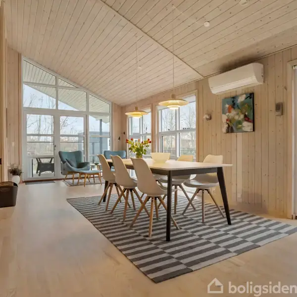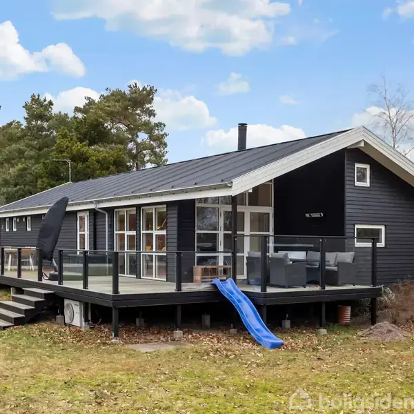 Dette velholdte fritidshus er beliggende på en rolig og ugeneret grund med god afstand til naboer og masser af luft omkring sig. Her får du skønne rammer for afslapning, udeliv og kvalitetstid – uanset om du søger ro eller aktive feriedage med familie og venner. Huset er indrettet med fire gode værelser samt en hems, der giver ekstra soveplads eller kan anvendes som hyggeligt opholdsrum. Den lyse og indbydende stue med høj loftshøjde skaber en rummelig og behagelig atmosfære, hvor de store vinduespartier sikrer et flot lysindfald. Brændeovnen bidrager til ekstra hygge på kølige dage, og fra stuen er der direkte udgang til terrassen, som naturligt bliver husets samlingspunkt i sommerhalvåret. Køkkenet ligger i åben forbindelse med stuen og er funktionelt indrettet med god arbejdsplads og fine opbevaringsmuligheder. Fritidshuset råder over to badeværelser – det ene med bruseniche og det andet med badekar med bruser over. Entré og gang giver en god og overskuelig fordeling af rummene. Udendørs får du en stor terrasse, delvist overdækket, hvor der er rig mulighed for både sol og skygge. Den rummelige have indbyder til leg og ophold og byder blandt andet på trampolin samt et hyggeligt shelter, der giver mulighed for overnatning under åben himmel. Derudover er der ekstra bygninger, som kan anvendes til opbevaring, gæster eller hobbybrug. Et indbydende fritidshus med en god kombination af plads, komfort og hyggelige rammer – velegnet til både familieferier og afslappende ophold året rundt.