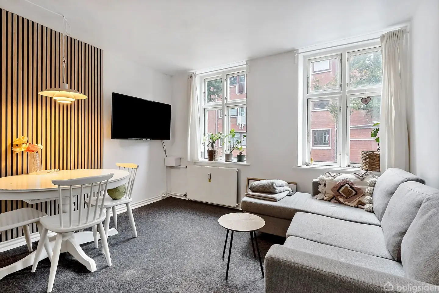 Åbent hus med tilmeldingskrav 3/2 - klik på billede - EDC Åløkken byder velkommen på Pjentedamsgade 4, st. – en veldisponeret, høj og ugenert stuelejlighed med en god planløsning og en attraktiv beliggenhed. Fra adressen er der kun få minutters gang til de smukke haver og parkanlæg langs Odense Å, hvor man finder nogle af byens bedste åndehuller. Ønsker I byliv og kultur, ligger en stor del af Odenses kulturliv samlet i den historiske bymidte, og placeringen giver mulighed for man kan nyde godt af de mange tiltag, som byfornyelsen har bragt til området. Derudover har man både H.C. Andersen-kvarteret, cafélivet, banegården samt letbanen til universitetet og det nye OUH lige i nærheden – alt sammen inden for gåafstand. Lejligheden byder på en indbydende entré med adgang til både køkken og et af værelserne. Køkkenet er veludnyttet og praktisk indrettet med god skabsplads, og herfra er der adgang til en mindre gang, der forbinder lejlighedens øvrige rum. Lejligheden rummer to gode værelser, der kan anvendes som soveværelse, børneværelse eller hjemmekontor. Efter behov er der desuden mulighed for at sammenlægge værelserne til ét større rum, da der bag akustikpanelerne allerede findes en åbning mellem dem. Stuen ligger i forlængelse ad gangen og fremstår lys og indretningsvenlig med plads til både sofaområde og spiseplads. Store vinduespartier sikrer et dejligt naturligt lysindfald. Badeværelset er centralt placeret og indrettet med bruseniche, toilet og dobbeltvask. Som ekstra plus byder ejendommen på fri tøjvask i kælderen samt mulighed for billig beboerlicens til parkering, hvilket gør hverdagen endnu mere bekvem. En ideel lejlighed for singlen, parret eller den lille familie – eller som en attraktiv delelejlighed med to separate værelser.