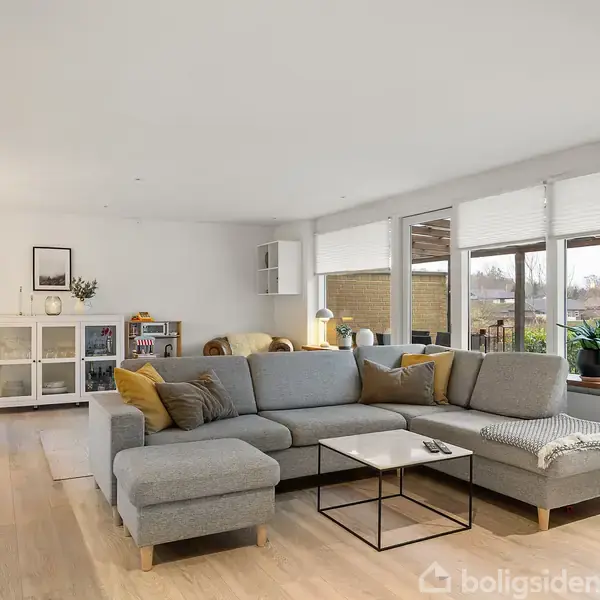 Højt og attraktivt beliggende villa i populære Ryomgård!På Platanvej 3 får du en bolig, der kombinerer rummelighed, funktionalitet og en af byens absolut bedste udsigter. Ejendommen rummer hele 140 m² i ét plan og ligger på en stor 1.376 m² grund, hvor udsigten kan nydes fra både inde- og udearealer.Når du træder ind i hjemmet, mødes du af en hyggelig entré med adgang til et praktisk gæstetoilet. Herfra bevæger du dig videre ind i det store og indbydende køkken/alrum fra ca. 2010, som udgør huse
