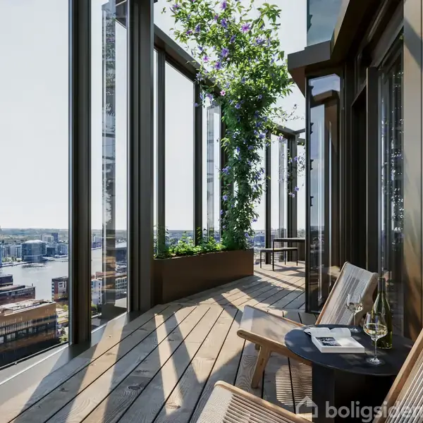 Det 400 år gamle danske postvæsen har haft sin tid, selv det svenske PostNord har givet op og leverer ikke breve mere fra 2026. Digitaliseringen er det, der driver udviklingen i dag, og den gamle postgrund, som har en af de bedste beliggenheder i København, er ved at forvandle sig til et nyt og fuldstændig mageløst eventyr uden postkasser. Postbyen, hedder den nye bydel med urban stemning, indrettet med cirkulære boligtårne og frygtløse, behjertede planløsninger. Fra 2026 en bilfri bypark med restauranter, caféer, butikker, grønne træer og vandskulpturer lige uden for døren. Ejendommen Postbyen 8 har 2 duplex penthouselejligheder, som ligger forskudt af hinanden, så de hver deler etagerne på 22. og 23. sal med en næsten 360 graders udsigt over byen. Et arkitektonisk greb, som giver de 2 lejligheder de vildeste udsigter over København, Nordkysten, Skåne og Øresund og videre ned mod det sydlige Sjælland. Den ene er solgt, den anden er nu på boligmarkedet med 310 m2 og 2 private, aflåselige garager i kælderen. Herfra er der elevator direkte op til lejligheden på 22. etage og trapper op til den private tagterrasse med tableauer i udsigten, man altid, aldrig bliver mæt af. Alle materialer er valgt på øverste hylde, alt er håndværksmæssigt snedkereret og lækkert bygget. Fra Postbyen er der Metro og gåafstand til stort set alt i København. Det gælder de bedste restauranter, de hyggelige caféer, de lækre butikker. Alt er lige om hjørnet, også kulturen med gallerierne, balletten i Det Kongelige Teater og skuespillet i Skuespilhuset. Postbyens placering er noget helt særligt og gør bydelen let tilgængelig, uanset om man kommer med S-tog, Metro, direkte fra lufthavnen eller med bil fra indfaldsvejen ind til Københavns centrum.