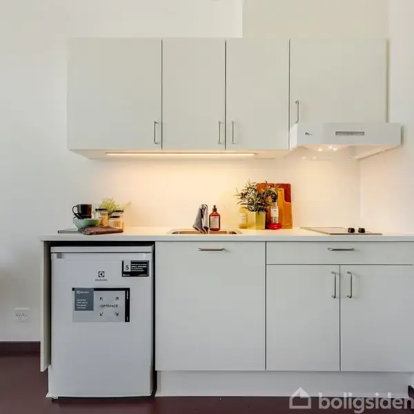 Nu kan du få nyt hjem i Blækhus Valby M. Det unikke projekt beliggende ved området Valby Maskinfabrik består af 125 attraktive 1-værelses lejligheder. Lejlighederne er velindrettede og opført i lækre materialer. Stilen er moderne med rustikke betonvægge i gangene, højt til loftet, eget køkken og tagterrasse på de øverst beliggende boliger. Hvorfor bo i Blækhus Valby M? - Central beliggenhed - Rummelig 1-værelses bolig - Et moderne udtryk - Højt til loftet - Store vinduespartier OBS - Billederne er taget i en prøvebolig