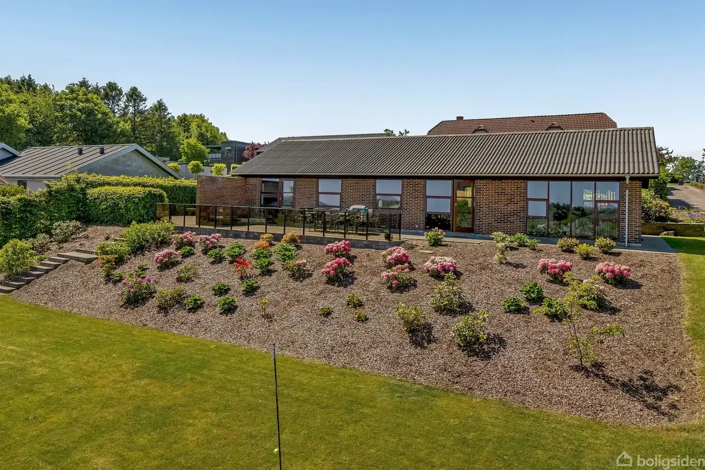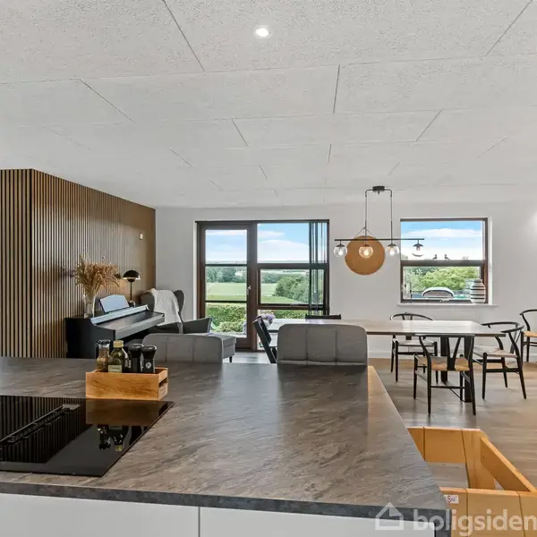 Åbent hus med tilmeldingskrav 11/2 - klik på billede - Det hører til sjældenhederne at man kan få netop sådan en fantastisk udsigt. Her er udsigt til marker og skov mere eller mindre så langt øjet rækker. Denne unikke udsigt kan man nyde fra sit store moderne køkken-alrum, stuen, terrassen eller værelserne. Derudover er det en fuldstændig ugeneret beliggenhed i første række til udsigten. Ejendommen er total indflytningsklar eftersom villaen har fået en gennemgående renovering. Det er ikke kun nyere indvendigt, der er også anlagt en ny have, hvorfra udsigten kan nydes i ro og mag. Vi er her beliggende i et populært, børnevenligt og roligt kvarter med kort afstand til skov, indkøb, Østre skole mm. Derudover er der en carport med tilhørende skur. Indretning: Indvendigt fremstår villaen renoveret med det morderne look for øje, men samtidig med respekt for villaen charme og sjæl. Man mødes af en lys, rummelig og dejlig entré med skabe, håndvask, plads til vaskemaskine, tørretumbler og overtøjet. Herfra kan man fortsætte til højre ned mod værelsesafdelingen med 2 gode og store værelser, samt et stort soveværelse med direkte udgang til terrassen. 2 af værelserne har vinduer mod den smukke udsigt. Man har også formået at skabe en rigtig fin planløsning, da der er et lyst og moderne badeværelse + et fint gæstetoilet. Køkkenet er i åben forbindelse med spisepladsen, hvor der kommet et fantastisk lysindfald. Spisepladsen og stuen er afskærmet af en flot moderne væg, men stadig i åbenforbindelse med hinanden. Fra køkken-alrum og stue kan man også nyde den skønne udsigt. Sidst men ikke mindst er der endnu en fin entré til huset. Nu har i muligheden for at få en helt unik ejendom, som er total indflytningsklar og med en helt fantastisk udsigt. Lyder det som noget for jer, så book allerede i dag en fremvisning.