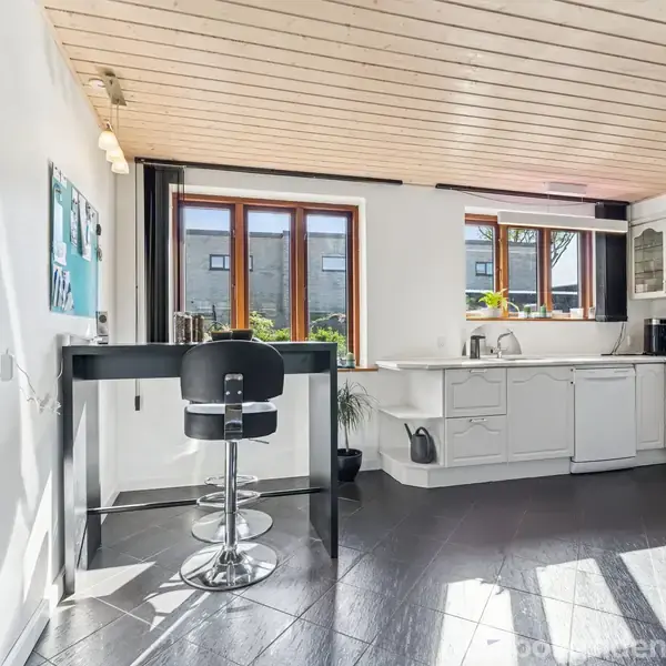 Stor villa med plads til familien i Sunds Sunds Sø, skole og indkøbsmuligheder ligger alt sammen i jeres kommende kvarter, der er et roligt ét af slagsen. Det er således på en god adresse, at I præsenteres for denne imponerende familievilla på 259 kvadratmeter. Taget er skiftet i 2012, og boligen fremstår generelt velholdt inde som ude. En hyggelig have med dam og dejlige solforhold følger også med. Velkommen til Sunds. Set udefra gør villaen en flot figur af sig med sine rødbrune mursten og