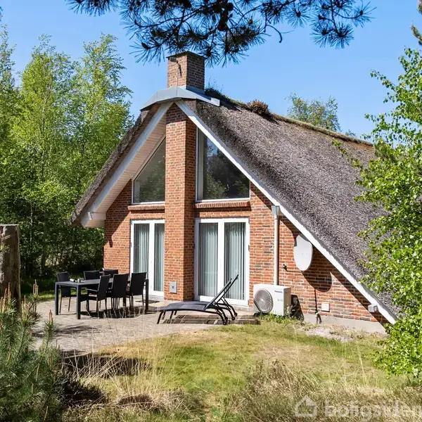 Åbent hus med tilmeldingskrav 3/2 - klik på billede - Nu sælges et større sommerhus, beliggende på en 2.647 m² stor naturgrund midt i et af Rømø ældste sommerhusområder - Langdal. Langdal grænser op til det mere kendte område, Sønderstrand. Huset er beliggende ca. 1,4 km fra Sønderstrand. Huset er iflg. dingeo.dk beliggende 3,3 m over havet og er ydermere beskyttet af Kirkeby havdiget. Grundvandsdybden iflg. dingeo.dk er 0,5 m til 2,5 m. Langdal sommerhusområde er beliggende i en af øens ældre klit-/hedeområder, hvis flora tidligere bestod af lyng - vekslende med div. græsarter. Da "sommerhusfolket" tog området i brug - blev der tilført især fyrretræsbevoksning for at skabe læ for vinden. Og således er det også tilfældet her på grunden. Huset er på 122 m² beboelse og oprindeligt opført som et etplanshus i 1977 af murermester Kjeld Aaskov til eget brug og med et boligareal på 75 m² + et uudnyttet tag rum. Sælger har haft huset siden 1989 og i 1994 udnyttes 1. sal med soveværelse, sauna og et toilet i alt 29 m2 beboelse og opholdsrummet udnyttes til kip. I 2004 fornyes køkkenet og i 2011/12 blev opholdsrummet udvidet med 18 m². Huset består i stueplan af entré/garderobe/gang med flisegulv, 2 soveværelser med hver en enkeltseng, skab og gulvtæppe, 1 soveværelse med en dobbeltseng. 2 skabe og gulvtæppe, et stort badeværelse med bl.a. spa, bruseniche, fliser på gulv, vandskurede vægge og gulvvarme og et rummeligt og hyggeligt opholdsrum bestående af bl.a. et veldisponeret køkken med bl.a. keramisk komfur, emhætte, køle-fryseskab og opvaskemaskine i åben forbindelse til en kombineret spise- og opholdsafdeling med bl.a. brændeovn fra 2011, varmepumpe fra 2022 og lofter til kip. Fra stuen udgang til en sydvendt og åben flisebelagt terrasse på ca. 45 m² . Fra køkkenet udgang til en mindre træterrasse. Fra træterrassen indgang til et integreret bryggers med bl.a. vaskemaskine og tørretumbler. På 1. sal et stort soveværelse med 1 dobbeltseng og gulvtæpper, et badeværelse med et brusehjørne og linoleum på gulv + vægge i brusehjørnet og en sauna. Til huset hører også et brændeskur på ca. 10 m² opført i træ. Der er installeret en lade boks til el-biler. Huset er som nævnt senest udvidet og renoveret i 2011/12. Stuen blev udvidet med 18 m², badeværelset i stueplan blev udvidet og totalrenoveret (også el- og vvs-installationer), badeværelset på 1. sal blev ligeledes renoveret, ny træbeklædning og vandskurede vægge i gang og stue/køkken, nye gulve i gang og stue/køkken, nye splintfrie vinduer i stue/køkken og nyt stråtag. Huset opvarmes med el - herunder varmepumpe og suppleret af brændeovnen. Der er gulvvarme i badeværelset i stueplan. Huset er i 2026 tilmeldt udlejning gennem Feriepartner Rømø med reg. nr. 2601. Lejeindtægten i 2022 var kr. 142.666,- + afregning for fobrug. I 2023 var lejeindtægten kr 115.161,- + forbrug.I 2024 var lejeindtægten kr-. 108.532,- + forbug. Lejeindtægten i 2025 var kr. 117.892,- + forbrug,