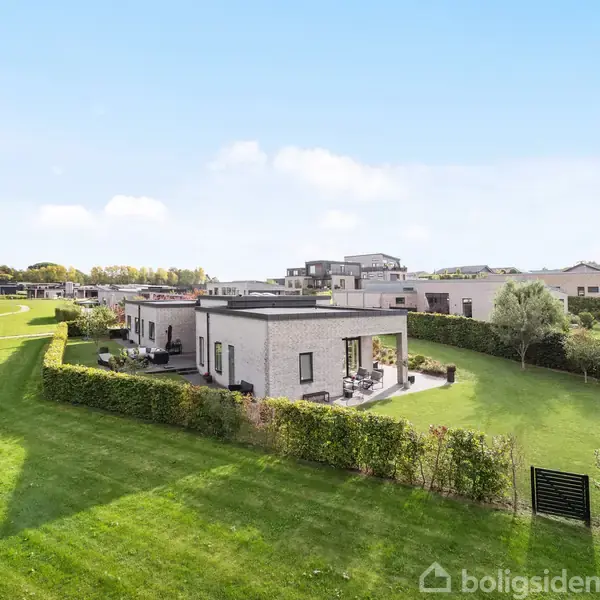 Funkisvilla i særklasse med udsigt til sø og skovPå Præstelunden 39 får I en moderne funkisvilla, hvor både arkitektur og beliggenhed skiller sig ud. Med 220 m² bolig fra 2017, placeret direkte ud til sø og skov, kombineres æstetik, funktionalitet og naturnær luksus i en bolig, der giver plads til hele familien.Gennemtænkt planløsningHuset rummer i alt seks værelser og er indrettet, så flere behov kan tilgodeses. Den ene ende af boligen kan lukkes af fra den resterende del og fungerer perfekt so