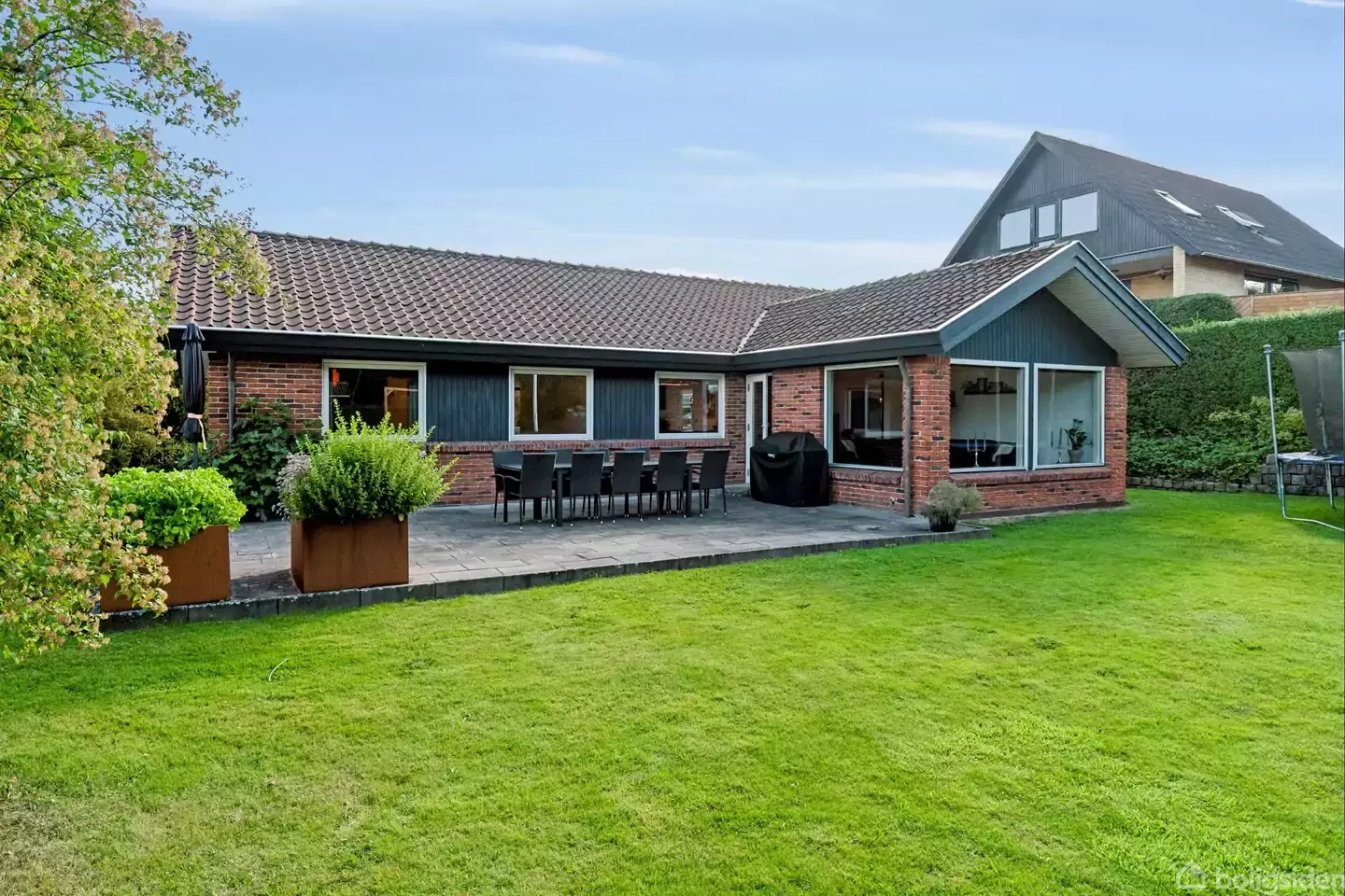 Åbent hus med tilmeldingskrav 10/2 - klik på billede - Velkommen til Præstemarken 17 – en skøn ejendom beliggende i et fredeligt og børnevenligt kvarter, med en praktisk indretning. Huset byder velkommen med et rummeligt og funktionelt bryggers. Herfra træder du ind i boligens absolutte hjerterum: et imponerende stort køkken-alrum, hvor lysindfaldet fra de store vinduespartier skaber en luftig og indbydende atmosfære. Her er der plads til både hverdagens små øjeblikke og de store sammenkomster, og med direkte udgang til haven får du en harmonisk overgang mellem ude og inde. Boligen rummer desuden et stort soveværelse med rigelig skabsplads, to hyggelige værelser samt et flot badeværelse og et ekstra gæstetoilet – en optimal planløsning, der passer til både børnefamilien, parret eller seniorerne, der ønsker god plads. Haven er anlagt, så den er nem at holde, men stadig byder på flere skønne terrasser, hvor du kan nyde udelivet fra morgen til aften. Især én terrasse fortjener særlig opmærksomhed – herfra har du et fantastisk kig ud over byen, hvilket giver en helt særlig stemning. Til ejendommen hører desuden et godt udhus, der kan bruges til alt fra værksted og opbevaring til hobbyrum eller et lille hjemmekontor. Kort sagt: Her får du en moderne og veldisponeret bolig i skønne omgivelser – og samtidig med nem adgang til byens faciliteter. En perle, der skal opleves! Kontakt os for en fremvisning – vi glæder os til at vise dig dit nye hjem!