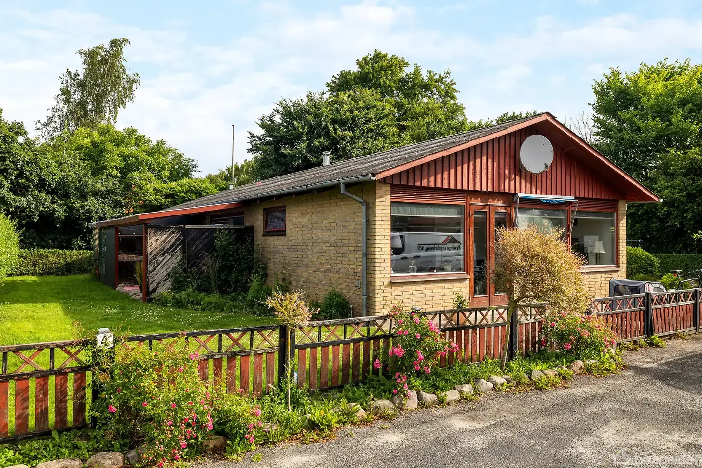 1 plans hus i gule mursten beliggende i Søllinge. Boligen er med sine 137m² indrettet med lyst køkken med klingegulv gulv og meget opbevaringsplads, lys spisestue med klinker på gulvet og udgang til overdækket terrasse via stor skydedør. Lys og pæn vinkelstue- her er plads til at trække sig tilbage og slappe af i de bløde møbler. Fra denne stue er der også udgang til terrasse. Soveværelse og 2 værelser – èt af værelserne har udgang til haven, mens det andet pt anvendes til opbevaring. Fint bade