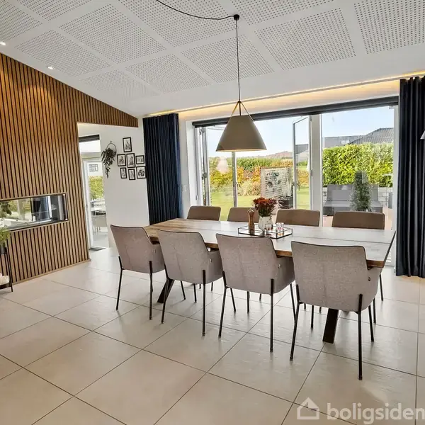 Åbent hus med tilmeldingskrav 3/2 - klik på billede - Velkommen til dette eksklusive og indflytningsklare hjem fra 2020, opført af HusCompagniet, hvor kvalitet, funktionalitet og æstetik går hånd i hånd. Boligen byder på hele 180 m² bolig og en sjældent stor garage på 75 m² – alt sammen beliggende for enden af en stille stikvej med fri udsigt over de grønne områder og mod Lund. Her får du et hus, der både føles nyt og er passet med omhu fra dag ét. Indenfor mødes du af et lyst og rummeligt hjem med gulvvarme i alle rum – ja, selv i garagen. Det moderne køkken ligger centralt som boligens naturlige samlingspunkt, hvor du kan nyde både madlavning og udsigten til naturen gennem de store vinduespartier. Planløsningen er gennemtænkt med fire gode værelser, to elegante badeværelser, et praktisk bryggers og et lækkert walk-in closet i forbindelse med det store soveværelse. Hver detalje er nøje udvalgt – fra den støjsvage centralstøvsuger med vægmonteret slange til de kvalitetsrige materialer og det vedligeholdelsesfrie udemiljø. Udendørs fortsætter den høje standard med en stor, vedligeholdelsesfri terrasse i komposit – perfekt til afslappede sommerdage og hyggelige aftener med familie og venner. Garagen, der er opvarmet med gulvvarme, giver dig ikke bare plads til biler, men også mulighed for værksted, opbevaring eller hobbyrum. Ejendommen ligger i det attraktive og børnevenlige område Provstlund i Lund – kun 10 minutters kørsel fra Horsens og 5 minutter fra motorvej E45. Her finder du alt, hvad familien behøver i hverdagen: skole til 9. klasse, daginstitutioner, indkøb i Rema 1000 og Dagli’Brugsen, frisør, pizzaria og et levende foreningsliv med sportshaller og boldbaner. Området bindes sammen af sikre stisystemer, der fører til både legekammerater, natur og hverdagens gøremål. Lige ved udstykningen ligger Provstlund Skoven, som inviterer til løbe-, cykel- og gåture i smukke, rolige omgivelser. Dette hjem er til dig, der drømmer om moderne komfort, æstetik og natur – et sted, hvor livet kan leves fuldt ud, fra første dag du flytter ind.