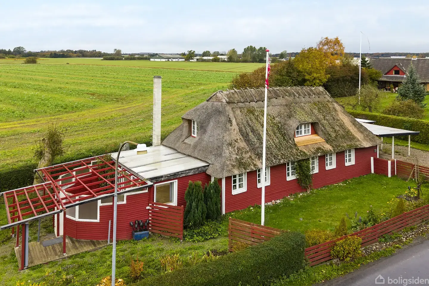 EJENDOMSTYPE: Ejendommen her er en charmerende og stemningsfuld bindingsværksejendom fra 1860 på 138 m² fordelt på to plan. Huset er senere blevet nænsomt beklædt med træ, hvilket giver et idyllisk og landligt udtryk – næsten som en klassisk svensk ødegård, hvor sjæl og atmosfære er bevaret. Det smukke stråtag fuldender helheden, og de småsprossede vinduer rundt om huset, sørger for et originalt udtryk både ude og inde. Til ejendommen hører et rummeligt udhus, som rummer både værksted og god opb