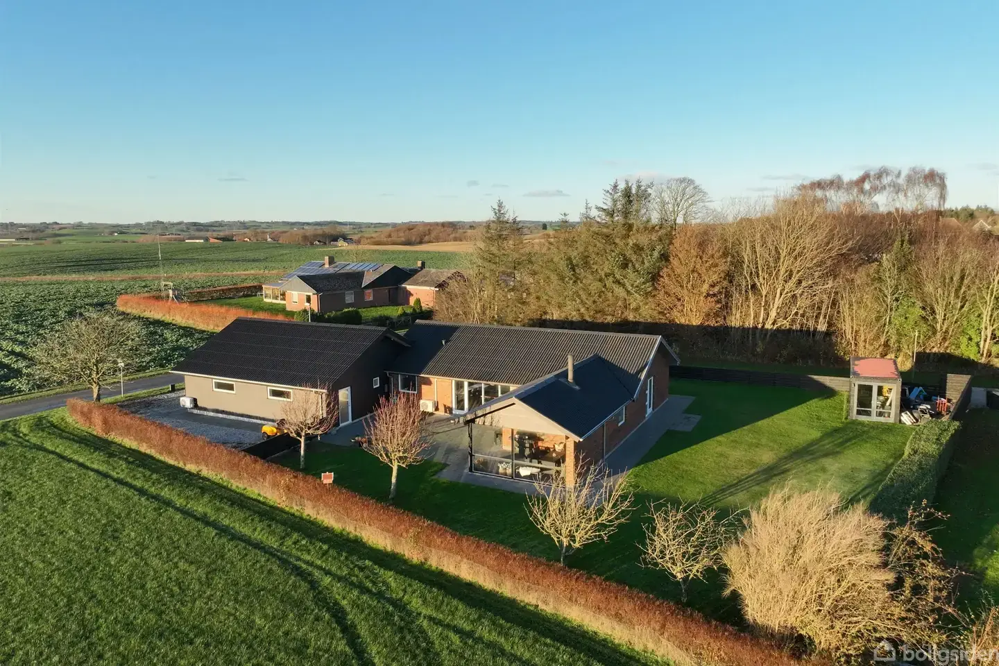 Åbent hus med tilmeldingskrav 1/2 - klik på billede - Hvis du drømmer om en bolig, der kombinerer moderne komfort, lækre materialer og store lyse rum, så er denne ejendom lige noget for dig. Her bor du omgivet af åbne marker og fredfyldte omgivelser, men stadig kun 12 km fra Frederikshavn og med kort afstand til både Gærum og Østervrå. Det er en placering, hvor du får ro, natur og plads omkring dig – uden at opgive nærheden til hverdagens bekvemmeligheder. Boligen er opført i 1979, men fremstår i dag gennemrenoveret med stor omtanke for både kvalitet og æstetik. Sælger har endda fået udskiftet næsten alle elinstallationer, så huset teknisk står lige så flot som visuelt. De 162 m² rummer to gode værelser samt et stort soveværelse med eget badeværelse og direkte udgang til en østvendt terrasse, hvor morgenlyset byder dig velkommen fra første færd. Alle tre badeværelser samt bryggerset har desuden gulvvarme, som giver en ekstra følelse af komfort i hverdagen. Opholdsrummene er forbundet på smukkeste vis i en åben og harmonisk planløsning, der giver en skøn sammenhæng mellem køkken, spisestue og stue, samtidig med at hvert rum føles afgrænset og hyggeligt på sin egen måde. Køkkenet er lyst, funktionelt og indrettet med god opbevaringsplads samt et lille spisehjørne, hvor hverdagen får lov at folde sig ud. Herfra åbner rummet sig videre ind i den rummelige spisestue, der imponerer med store glaspartier, smukt lysindfald og udsigt direkte til naturen. Her er der udgang til den store sydvestvendte terrasse, hvor solens varme kan nydes fra middag til aften. Stuen er boligens afslappende samlingspunkt, og når vinden rusker udenfor, er det her pillebrændeovnen skaber varme og atmosfære. Planløsningen afrundes af et gæstetoilet og et rummeligt bryggers, der giver direkte adgang til garagen. Hele boligen bindes sammen af lyse troldtektlofter med indbyggede spots og smukke, lyse gulve, som giver huset en let og moderne helhed. Hertil kommer en luft-til-luft varmepumpe, der hjælper med at holde varmeudgifterne på et fornuftigt niveau året rundt. Garagen er i en klasse for sig og vil uden tvivl få enhver bilelsker, håndværker eller hobbyentusiast til at løfte øjenbrynene. Den er på hele 93 m², opført i 2021 og rummer loft til kip, dobbelt elport, egen varmepumpe, bar, badeværelse og endda en lift til bilen. Det er et fantastisk multifunktionelt rum, som både kan bruges til projekter, køretøjer og værksted – eller forvandles til en gildesal for en enkelt aften med plads til både gæster og festligheder. Grunden på 1.200 m² er let at holde og ligger direkte op til åbne marker, hvilket giver en helt særlig følelse af luft og frihed. Den overdækkede terrasse med store glaspartier og udsigt over landskabet er et oplagt sted at tilbringe sommeraftenerne, også når vejret spiller sine luner. Alt i alt får du her en bolig, der imponerer både ude og inde: gennemrenoveret, moderne, velindrettet – og med en garage, der er noget ganske særligt. En unik mulighed for dig, der ønsker et hjem ud over det sædvanlige, hvor både kvalitet, plads og beliggenhed går op i en højere enhed.