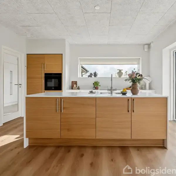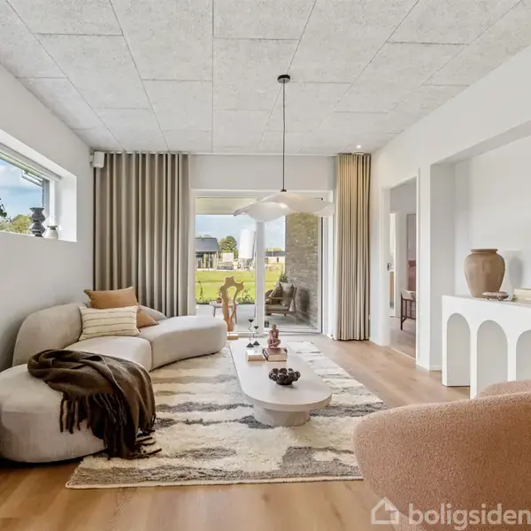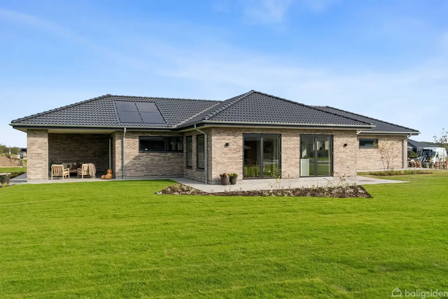 Kvalitetsnybyggeri med hele 165 m² bolig, stor integreret dobbeltgarage og familievenlig planløsning Velkommen til Ræven 16 – en moderne og velindrettet villa i et af Støvrings mest attraktive nybyggerkvarterer. Her får I en stor 165 m² gennemført bolig, en dejlig so stor 56 m² integreret dobbeltgarage med gulvvarme. Velkommen indenfor – entré med integreret bænk og skjult teknik Indgangen byder på en flot entré med indbygget bænk, praktiske skabe og skjult teknik, så I får en velkomst, der både er stilfuld og funktionel. Den direkte adgang fra den store dobbeltgarage gør hverdagen let – især når bilerne skal tømmes, eller børnene kommer hjem med sportstasker og mudrede støvler. Køkken-alrum med lys fra tre sider, HTH-inventar og sansevindue Husets køkken-alrum er lyst og indbydende med lysindfald fra tre sider, høj loftshøjde på 264 cm og kvalitetsinventar fra HTH. Det praktiske skjulte depot giver ekstra opbevaring, mens det smukke sansevindue skaber en naturlig forbindelse til haven og giver rummet en særlig ro. Køkkenet er udstyret med bordemfang, elegant Unito Infinity-armatur og en moderne indretning, hvor stil og funktionalitet går hånd i hånd. Stue med alkove og adgang til overdækket terrasse Stuen ligger i forlængelse af alrummet og har direkte udgang til en overdækket terrasse, hvor udendørssæsonen kan strækkes langt. Den indbyggede alkove giver et hyggeligt opholdssted til læsning, afslapning eller et godt spil med familien – en lille detalje, som giver stor atmosfære. Børneafdeling, legerum og kontor – plads til familielivet Børneafdelingen rummer to gode værelser med god skabsplads og et tilstødende legerum/kontor, der fleksibelt kan indrettes efter behov. Det giver mulighed for både leg, kreativitet eller arbejde hjemmefra i en rolig del af huset. Forældreafdeling med eget badeværelse og skabsvæg I den modsatte ende af huset finder du en separat forældreafdeling med skabsvæg, stort soveværelse og eget badeværelse med kvalitetsinventar. Her er der tænkt detalje for detalje, så afdelingen fungerer som en privat oase væk fra husets aktivitet. Garage, bryggersløsning og praktiske detaljer Den integrerede dobbeltgarage på 56 m² er opvarmet med gulvvarme og har to porte. I garagen finder du boligens grovkøkken, og i det separate vaskerum står vaskemaskine og tørretumbler i søjle, som gør hverdagen ekstra nem. Grunden og området Ræven 16 ligger i det attraktive og familievenlige nybyggerområde ved Ræven i Støvring – tæt på stisystemer, skov, natur og alt det, der gør byen så eftertragtet. Grunden på 1.029 m² giver jer masser af plads til leg, udeliv og fremtidige drømme.