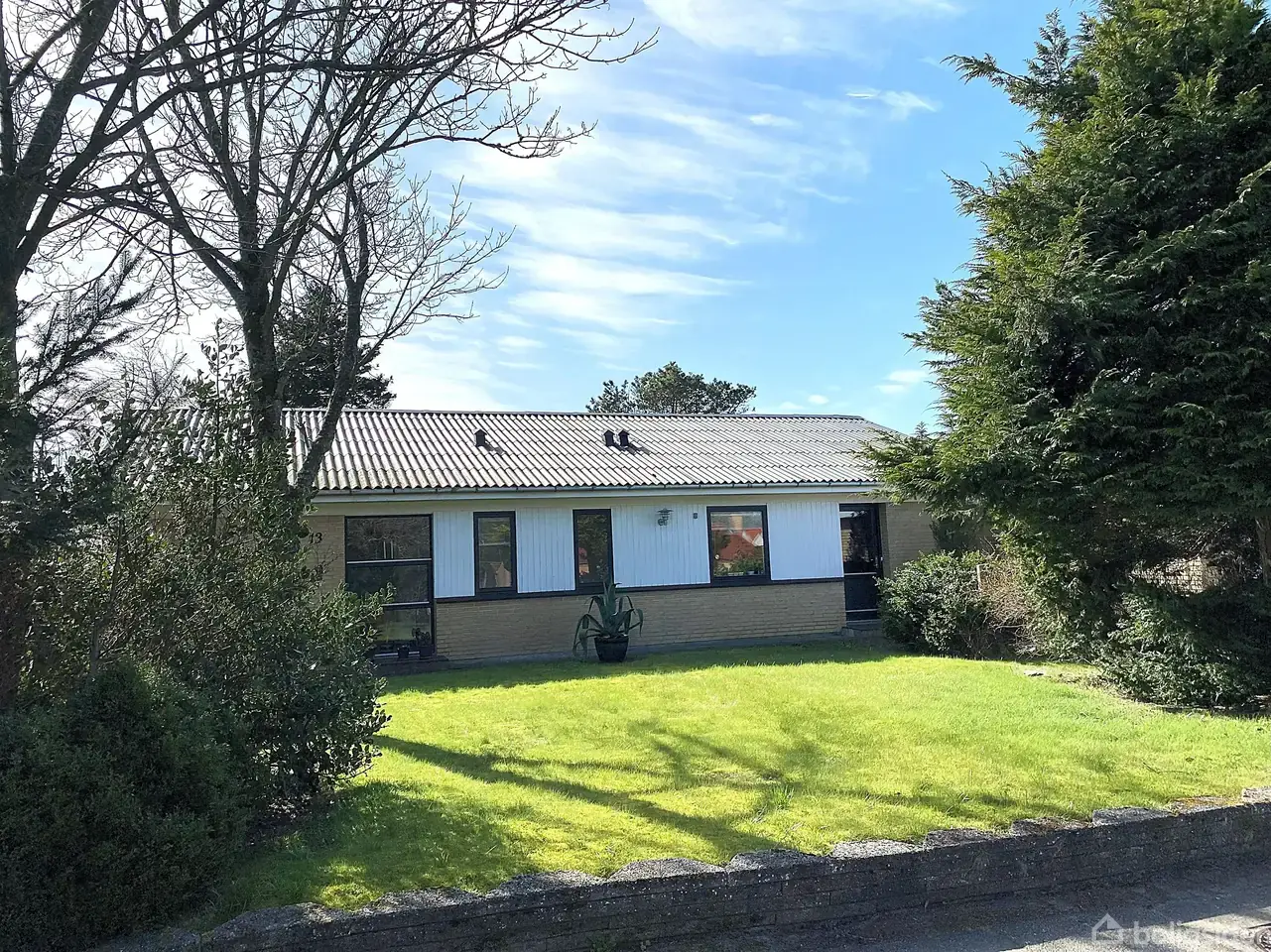 Velbeliggende 1-plans gulstensvilla på 137 kvm. hvortil kommer 32 kvm. muret garage med automatisk hæveport og godt værksteds-/hobbyrum. Beliggende på en 841 kvm. stor grund med sydvendt terrasse og helt lukket have med redskabshus. Kort afstand til klitplantagen og meget kort afstand til skole, idrætshal, børnehave og indkøb. Villaen, der er opført i 1971, har sortmalet eternittag, termovinduer, eternitbeklædte gavle, gips-/trælofter og opvarmes ved nyere luft til vand varmepumpe. Indeholder: bryggers med klinkegulv, køkken med spiseplads, lys opholdsstue med udgang til sydvendt terrasse, godt værelse med faste skabe, soveværelse med skabsvæg, værelse med faste skabe, gæstetoilet med klinkegulv og gulvvarme, badeværelse med bruseniche, klinkegulv og gulvvarme, gang med garderobeplads. En velbeliggende villa!