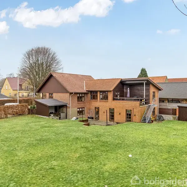 Velkommen til denne enestående villa, der kombinerer klassisk charme fra 1937 med moderne bekvemmeligheder fra en omfattende tilbygning og renovering i 2002. Med et imponerende boligareal på 257 kvadratmeter tilbyder denne ejendom masser af plads til både store og små familier. Villaen er beliggende på en fredelig villavej, hvilket sikrer rolige omgivelser samtidig med, at du har kort afstand til byens centrum. Indenfor mødes du af en lys og indbydende entré, der fører videre til husets hjerte; det åbne køkken-alrum, designet af JKE i 2009, som fremstår lyst og funktionelt - perfekt til både hverdagens måltider og festlige sammenkomster. Den dejlige opholdsstue giver direkte adgang til en skøn syd-vestvendt altan, hvorfra du kan nyde udsigten over den hyggelige have med fliser og gode bede. Villaen rummer, udover det praktiske bryggers, også to lyse badeværelser med bademiljø samt et stort soveværelse, der danner den perfekte ramme om afslappede nætter. Derudover finder du fem gode børneværelser samt et ekstra kontor og hobbyrum – ideelle rum for dem der arbejder hjemmefra eller har kreative interesser. Villaen er løbende blevet moderniseret både ude og inde, hvilket betyder at den står klar til indflytning uden behov for yderligere istandsættelse. Her får du ikke blot et hjem men også muligheden for at skabe uforglemmelige minder i trygge rammer. Der er cirka fem minutters gang til Byparken. og fra adressen er der også gåafstand til Brørupskolen. I kommer ligeledes til at bo tæt på byens mange indkøbsmuligheder, spisesteder og togstation, og Brørup har desuden både bibliotek, biograf og idrætshal samt friluftsbad, bowlingcenter og Brørup Marked som er kendt i det ganske land. Desuden er der nem forbindelse til motorvejen E20, og dermed kun cirka 20 minutters kørsel til Kolding Storcenter.