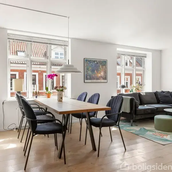 Velkommen til Rantzausgade 20, 2. tv. – en lys og indbydende lejlighed beliggende i et roligt og charmerende kvarter tæt på Aalborgs midtby. Beliggenheden forener det bedste fra begge verdener – her bor du tæt på centrum, men stadig i fredelige og hyggelige omgivelser. Du har kort afstand til caféer, indkøbsmuligheder, offentlig transport og byens mange øvrige faciliteter. Lejligheden byder på 78 veldisponerede kvadratmeter og fremstår gennemgående velholdt med flere opdateringer. Det moderne Svane-køkken fra 2017 har god skabsplads og et stilrent udtryk. Den rummelige stue har et skønt lysindfald og gode indretningsmuligheder, mens de to værelser begge fik nye gulve i 2019. Lofterne blev ligeledes renoveret samme år. Badeværelset er lyst og funktionelt. Ejendommen har også fået en opdatering: I 2021 blev der foretaget udvendig renovering af facade og vinduer, herunder nye fuger og maling – en klar forbedring, der både forskønner og vedligeholder bygningen. Der er adgang til et hyggeligt og velholdt gårdmiljø samt gratis fælles vaskefaciliteter i kælderen, hvor du frit kan benytte både vaskemaskine og tørretumbler gennem ejerforeningen. En indflytningsklar bolig med god komfort, attraktiv beliggenhed og velfungerende fællesfaciliteter – perfekt til både singler, par og den lille familie.