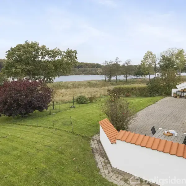 Der er meget at glæde sig til her på Rantzausvej 22 i Søgård, hvor I får en pragtfuld beliggenhed med panoramaudsigt til søen og skoven, så I har første parket til årstidernes skiftende farver og det rige dyre- og fugleliv, som udfolder sig for øjnene af jer lige uden for de store vinduespartier. Terrassen vender i samme fantastiske udsigtsretning, så I også herfra kan nyde den naturskønne beliggenhed i fulde drag. Huset er placeret en smule højt på grunden, hvilket gør udsigten endnu bedre, når