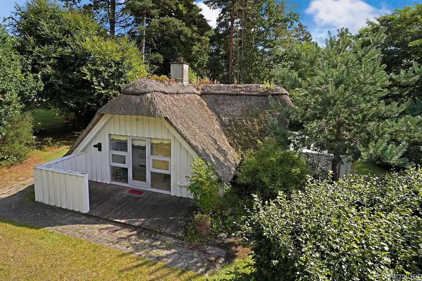 Charmerende sommerhus med den perfekte have.Velkommen til Ravnsbækvej i Hornbæk Her venter et lukket og idyllisk sommerhusområde, hvor de charmerende stråtækte huse og den fælles tennisbane skaber en helt særlig stemning. Netop denne grund er noget ganske særligt – måske en af de smukkeste og højest beliggende i området. Her får I hygge, ro og atmosfære for alle pengene. Når I begiver jer mod stranden, går turen gennem det fortryllende Kildekrog, og pludselig står I med fødderne i sandet. Stien