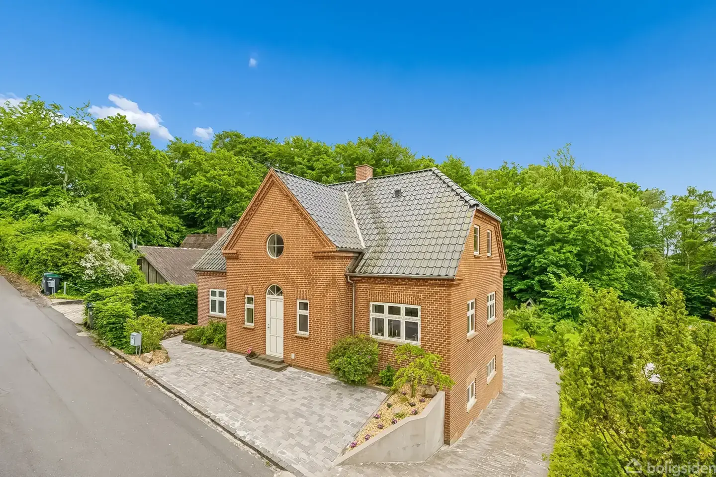 Lilleåen løber som en snirklet midte gennem Hadsten, og til begge sider spreder byens huse sig op i det skrånende landskab. Det er her, højt oppe, med den skønneste udsigt, at jeres nye hjem ligger klart. En formidabel murermestervilla fra 2013, opført med sans for det gode håndværk, der med sine tre etager kan rumme hele børneflokken. Det hele endda i gåafstand til børnepasning og skolegang og kun en tyve minutters togtur fra Aarhus. Fra første øjekast står det klart, at dette er et hus udover