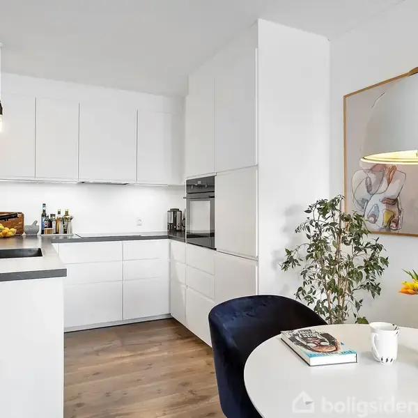 Åbent hus med tilmeldingskrav 1/2 - klik på billede - Revlingbakken er et naturskønt område, ligger kun 10 minutters cykeltur fra Aalborg Centrum, der er kort afstand til indkøbsmuligheder, UCN og Aalborg Universitet, og bussen kører næsten lige udenfor døren. Området er kendt for sin smukke natur og kuperede terræn, som er ideelt til vandreture og udendørs aktiviteter. Revlingbakken er præget af en varieret vegetation med skovområder, enge og åbne landskaber, der giver mulighed for naturoplevelser året rundt. Derudover er der gode træningsfaciliteter, da PureGym er kun 500 meter fra lejligheden, samt crossfit center i kort afstand. Lejligheden fik i 2018 renoveret loft og vægge, og installeret nyt køkkenet, så der er tale om en indflytningsklar lejlighed. Køkkenet er med hvide fronter og en sort kontrastbordplade, der giver et tidløst og stilfuldt udtryk i rummet. Ved indgangen er der en praktisk entre med plads til at organisere overtøj og fodtøj. Lejligheden har et dejligt køkkenalrum, hvor du får et dejligt lysindfald fra vinduerne mod syd. I forbindelse af stuen er der også en stor overdækket altan, med dejlig udsigt over de grønne områder. Altanen er sydvendt og giver en god eftermiddagssol. I ejerforeningen er der gode parkeringsmuligheder og der er nu også etableret ladestandere fra Clever ved ejendommen. Herudover råder ejerforeningen over cykelkælder, gildesal, god vaskekælder og mulighed for leje af kælderrum. Ejerforeningen er professionelt administreret og her er der altså styr på den daglige drift og ikke mindst økonomien.