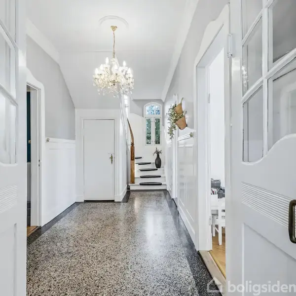 På Ribe Landevej 30 i Haderslev finder du denne elegante patriciervilla – et hjem, hvor historie, stil og nutidig komfort går op i en højere enhed. Ejendommen fra 1909 fremstår med alle de kendetegn, der gør patriciervillaen så eftertragtet: høje sprossede vinduer, markant sokkel, smukke proportioner og en arkitektur, der udstråler solidt håndværk og tidløs klasse.Indenfor fortsætter oplevelsen. Boligen er løbende opdateret med respekt for husets oprindelige sjæl, og resultatet er et hjem, hvor