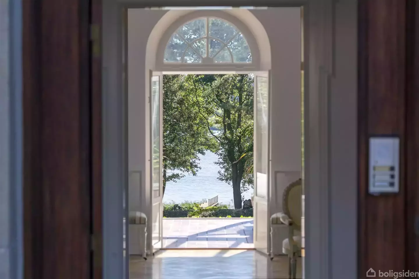 Denne eksklusive liebhaverejendom ligger ugeneret og indrammet af majestætiske træer midt i egen park direkte til 260 hektar stor sø med privat strand og bådebro, samtidig med at der er kort gåafstand til indkøb og gågade. By og land – her får man det bedste af begge verdener. Palæet på i alt 765 kvadratmeter er bygget i klassicistisk stil og udført i eksklusive materialer såsom håndbrændte sten i changerende farver, kobber, lærk, eg, jurakalk, granit og marmor. Ejendommen er tegnet af Peder Gra