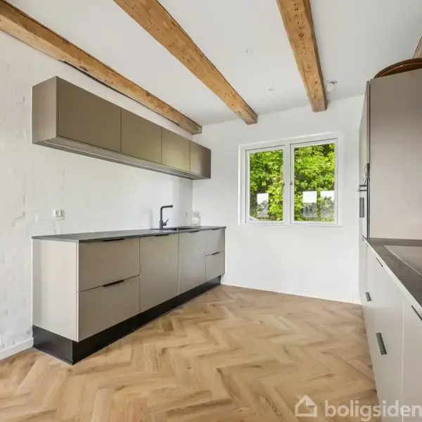 Midt mellem Vejle og Jerlev finder I jeres næste hjem: en skøn villa med skovbryn som nærmeste nabo og kort vej til bylivet. Her kan parret såvel som børnefamilien finde hjem i rammerne af 139 m2 fordelt over to etager.Lysindfaldet er generøst i hele boligen, og charmerende detaljer som parketgulve og fritlagte bjælker tilfører varme og personlighed. Stueetagen byder velkommen med et praktisk bryggers og et brusebadeværelse, men det er det åbne leverum, der for alvor sætter stemningen. Her smelt