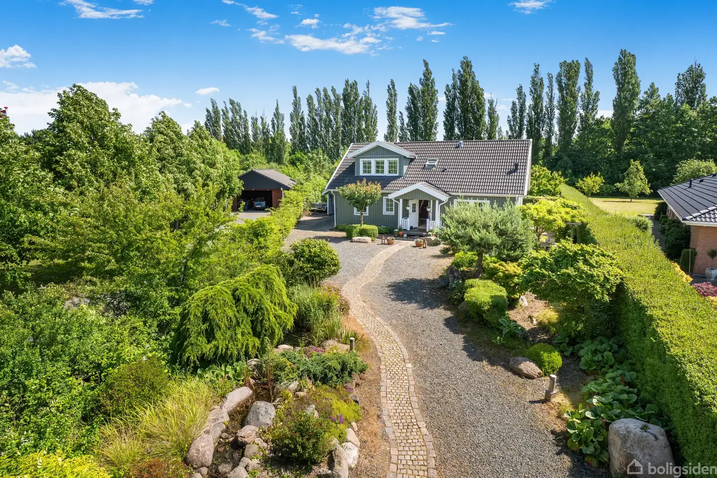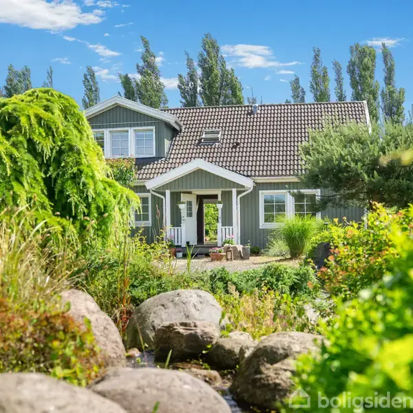 Naturlig charme med bæredygtig træfacadeDette træhus byder på en facade, der ikke blot er æstetisk tiltalende med sin varme og levende struktur – den giver også langt mere end charme. Træ er en vedvarende ressource, der binder CO₂ og skaber et bedre klimaaftryk sammenlignet med mursten og beton. Facadens naturlige isolerende egenskaber bidrager til et stabilt og behageligt indeklima året rundt og giver samtidig huset et imødekommende og hjemligt udtryk, der falder flot ind i de grønne omgivelser