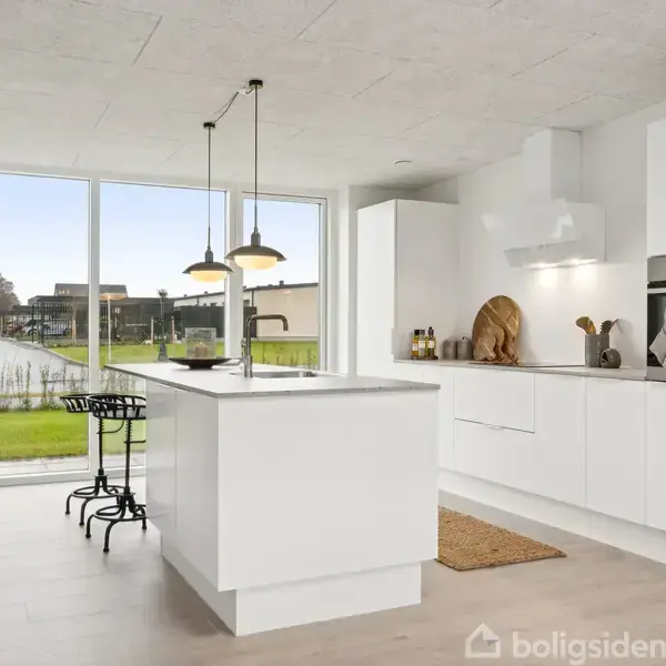 Nybygget villa i Ringkøbing EngbyEksklusive materialevalg, en veldisponeret planløsning samt en luftig, lys atmosfære kendetegner denne stilrene etplansvilla, som ligger i den nyetablerede bydel Ringkøbing Engby. Ejendommen er opført i 2023af det anerkendte byggefirma K2 Huset, og det har været med fokus på kvalitet og moderne, funktionelarkitektur. I kan se frem til at indrette et stort køkken-alrum med tilknyttet dagligstue samt separate værelsessektioner til børn og voksne. En dobbelt carport