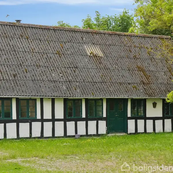 Mulighedsrig ejendom midt i det nordfynske I det lille område Ringe på Nordfyn, lige i midten mellem Bogense og Hasmark Strand, ligger dette fine bindingsværkshus fra 1817. Ved den hyggelige indkørsel tages I imod af en sirlig facade med mørkegrønne bondevinduer, som komplementeres af de flotte, dobbelte hoveddøre. Til ejendommen hører omtrent tre hektar jord, og hjemmet fremstår indvendigt autentisk og mulighedsrigt. For selvom dele trænger til en kærlig hånd, så er der masser af idyllisk stemn