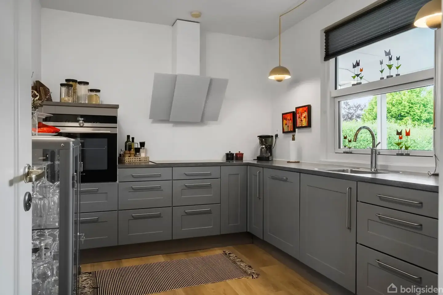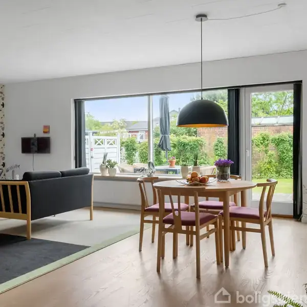 Åbent hus med tilmeldingskrav 5/2 - klik på billede - Velkommen til denne dejlige etplansvilla, der ligger med kort afstand til både dagligvarebutikker, grønne områder og byens hyggelige centrum. Her får du en bolig, der kombinerer funktionalitet med en skøn atmosfære og indbyder til et nemt og bekvemt hverdagsliv. Villaens hjerte er den lyse og rummelige stue med smukt trægulv og store vinduespartier, som trækker haven helt ind i rummet. Herfra er der direkte udgang til en sydvendt terrasse, hvor solen kan nydes det meste af dagen. Terrassen er perfekt til afslappede stunde og hyggelige grillaftener. Køkkenet er moderniseret og fremstår stilrent og funktionelt med god plads til både madlavning og opbevaring. Her kan familien samles om madlavningen i rare og lyse omgivelser. Boligen byder desuden på et rummeligt soveværelse med faste skabe, samt et praktisk kontor med direkte udgang til garagen, hvilket åbner op for mange muligheder – hvad enten det bruges til hjemmearbejde, hobby eller som ekstra værelse. I gangarealet skaber trægulv og et ovenlysvindue en lys og venlig atmosfære, der binder boligens rum harmonisk sammen. Badeværelset er indrettet med badekar og fremstår hyggeligt og funktionelt med flisebeklædte vægge og gode opbevaringsmuligheder. Hertil kommer et praktisk vaskerum, som sikrer en effektiv hverdag. Fra garagen er der adgang til en kælder med tre disponible rum, som nemt kan indrettes til opbevaring, værksted eller andre formål efter behov. Haven er lukket og sydvendt, anlagt med en nem græsplæne og smukke blomsterbede, der skaber en hyggelig og indbydende atmosfære. Her er der god plads til både leg, afslapning og udeliv i private rammer. Alt i alt en velindrettet villa med mange kvaliteter og en attraktiv beliggenhed, som vil tiltale både familier, par og seniorer, der ønsker en bolig, hvor det er nemt at føle sig hjemme fra første dag.