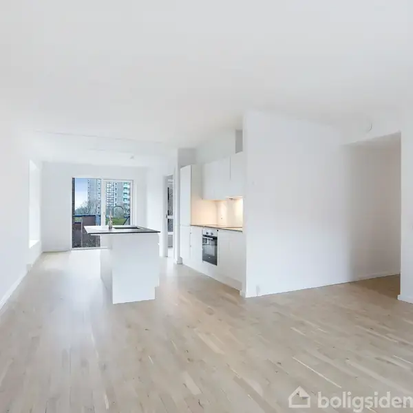 I får her muligheden for at overtage en veldisponeret og indflytningsklar lejlighed i et roligt og grønt kvarter tæt på både byens bekvemmeligheder og naturskønne områder. Lejligheden ligger på tredje sal i en nyere ejendom fra 2018 og byder på en gennemtænkt planløsning, der egner sig perfekt til både par, børnefamilier og singler med behov for plads. Roligt område med kort afstand til det hele Beliggenheden på Ringholmvej giver jer let adgang til både natur og by. Degnemosen, Bellahøjparken og Rødkilde Park ligger alle i gåafstand og tilbyder skønne omgivelser til løbe- eller gåture. Der er gode transportmuligheder med både bus og metro tæt på, og Grøndal Station med S-togsforbindelser nås nemt til fods. Indkøb, skoler og daginstitutioner ligger også lige i nærheden, og I er kun få minutters kørsel fra motorvejsnettet. Indbydende opholdsmiljø med køkken og stue i ét Boligens hjerte er det store, lyse opholdsområde, hvor stue og køkken-alrum flyder sammen i ét. Her er god plads til både madlavning, gæster og hverdagens aktiviteter, og det moderne køkken med køkkenø fungerer som et naturligt samlingspunkt. Store vinduespartier sikrer masser af dagslys og en venlig, åben atmosfære. Tre rummelige værelser og et funktionelt badeværelse Lejligheden rummer tre gode værelser, alle med indbyggede skabe, hvilket gør indretningen nem og fleksibel. Entréen byder på yderligere opbevaringsplads, og badeværelset fremstår lyst og pænt med separat bruseniche og mulighed for vaskesøjle. Privat altan og grønne omgivelser Fra stuen er der udgang til en dejlig altan – et oplagt sted at nyde en kop kaffe, lidt aftenro eller bare frisk luft. Derudover byder området omkring ejendommen på grønne fællesarealer og stille omgivelser, hvor det er rart at være – både som voksen og barn.
