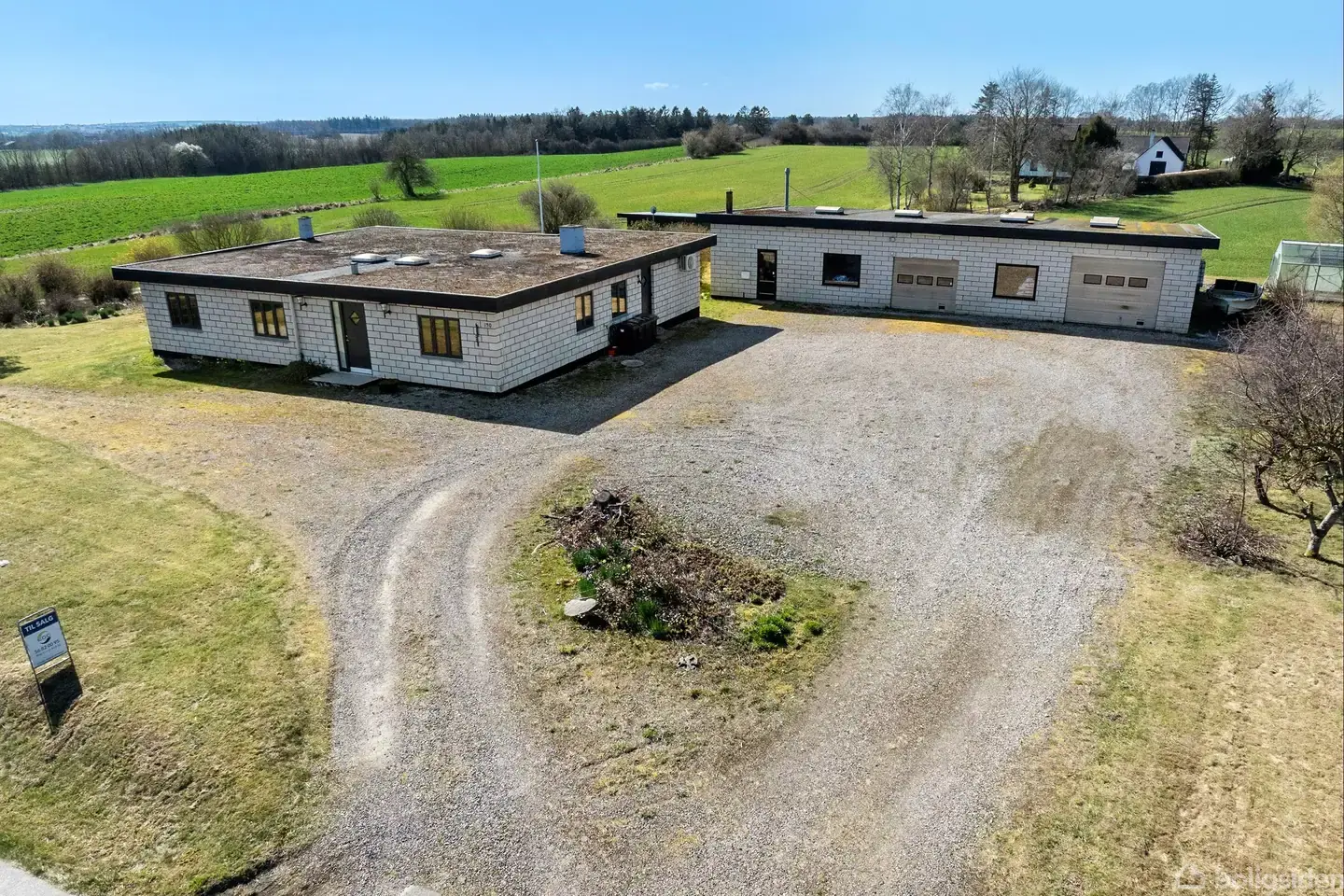 Åbent hus med tilmeldingskrav 16/2 - klik på billede - Fra Ringsted mod Holbæk, lidt før Store Merløse, ligger Ordrup, og her ligger en særdeles rummelig ejendom, på skøn stor grund - over 4700 kvm - med fantastisk udsigt over åbne vidder. Fin gårdsplads med nem adgang til den store udhusbygning som er på hele 265 kvadratmeter, indrettet som det perfekte værksted for hobbyfamilien, virkelig god plads til alle jeres pladskrævende hobbies. Boligen som næsten er kvadratisk, har hele 4 værelser, 2 badeværelser med brus, køkken med spiseplads, fyrrum med træpillefyr, og kæmpe stue, med forsænket panoramastue med flot udsigt over det bølgende landskab. Der er tillige brændeovn. Rå mursten og parketgulve giver et hint om fin byggestil fra 60érne! Villaen har få nye døre og vinduer, næsten overalt. En velfungerende ejendom, hvor man stadig selv kan sætte sit præg, men sagtens til at flytte ind i. Kom og kig, her er plads til alle.
