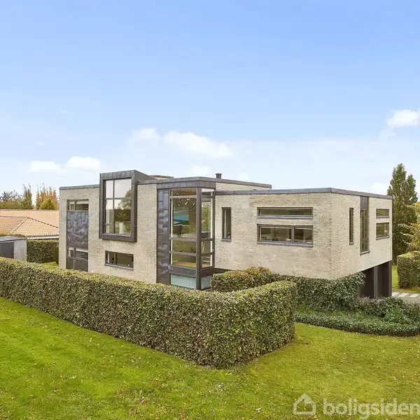 Åbent hus med tilmeldingskrav 13/2 - klik på billede - Velkommen til Risengård 10, en arkitekttegnet gennemført liebhavervilla fra 2007 med fantastisk beliggenhed i det eftertragtede Risengård i Stensballe. Her forenes moderne design, gennemtænkt funktionalitet og æstetik. Boligens 247 kvadratmeter fordeler sig på en gennemtænkt planløsning, hvor hver kvadratmeter er udnyttet optimalt. Du bydes velkommen i en imponerende hall, der åbner hele huset op med flot syn til husets øvrige etager med et fantastisk lysindfald. Herfra ledes I videre ind til husets hjerterum – det store køkken-alrum, som emmer af lys og luft takket være store gulv til loft vinduer, hvorfra der er en smuk udsigt til naturen og Stensballe Bjerge. Naturen bydes virkelig velkommen helt ind i dette fantastiske leve rum. Her er der rigeligt plads til den store familie, gæster og højtider. Køkkenet er elegant og stilrent og hvor hver funktion er tænkt ned i mindste detalje. På samme niveau finder I et stort værelse med masser af skabsplads samt et fint gæstetoilet. Fra husets imponerende hall er der ligeledes direkte adgang til et velfungerende og stilrent bryggers og derfra videre til en stor integreret og opvarmet garage med tilhørende depotrum. Førstesalen åbner op for endnu en oplevelse af husets unikke kvaliteter. Her finder I en vidunderlig opholdsstue med panoramavinduer på begge sider af stuen, der rammer landskabet smukt ind og lader dig følge årstidernes skiften fra første parket. Et sted at finde ro – og lade sig betage. På samme etage er huset store forældresoveværelse med direkte adgang til et stort badeværelse, hvor I får følelsen af spa og wellness. Her kan man nyde et varmt karbad i skæret og varmen fra huset pejs. 2 store værelser med tilhørende funktionelt badeværelse fuldender en gennemført 1. sal. Udenfor venter en smukt anlagt have, der er nem at holde og skabt til at nyde og ikke mindst en stor overdækket terrasse der er perfekt til lange sommeraftener med afslapning og samvær. Her får I en unik kombination af natur og nærhed til byen. Med gåafstand til skole, daginstitutioner, dagligvareindkøb og sportsfaciliteter er hverdagen let at få til at gå op. Kun få minutters gang fra ejendommen står du på en af landets flotteste golfbaner Stensballe Gård Golfklub. Stensballe Bjerge er ligeledes indenfor få minutters gå gang og herfra stisystemer til Elbæk Skov og Husodde Strand. Så drømmer I om en unik ejendom i absolut særklasse med en fantastisk beliggenhed skal I opleve Risengård 10.