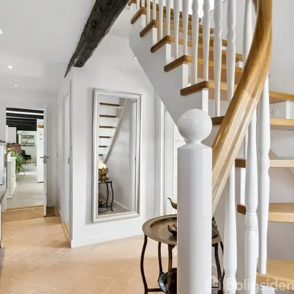 Boligen og indretningen Huset rummer 216 m² med en gennemtænkt planløsning, flotte detaljer og et skønt lysindfald. Ejendommen er fra 1877, men blev gennemrenoveret i perioden 2004-2015 og fremstår i dag moderne og indflytningsklar. Facaden er nymalet, stråtaget er fra 2021 og 2004, og vinduerne er fra 2006. Der er etableret gulvvarme i hele stueetagen, efterisoleret, udskiftet el, døre, skorsten og kloak, og huset opvarmes af en luft-til-vand varmepumpe. Stueplan byder på entré, stort bryggers,