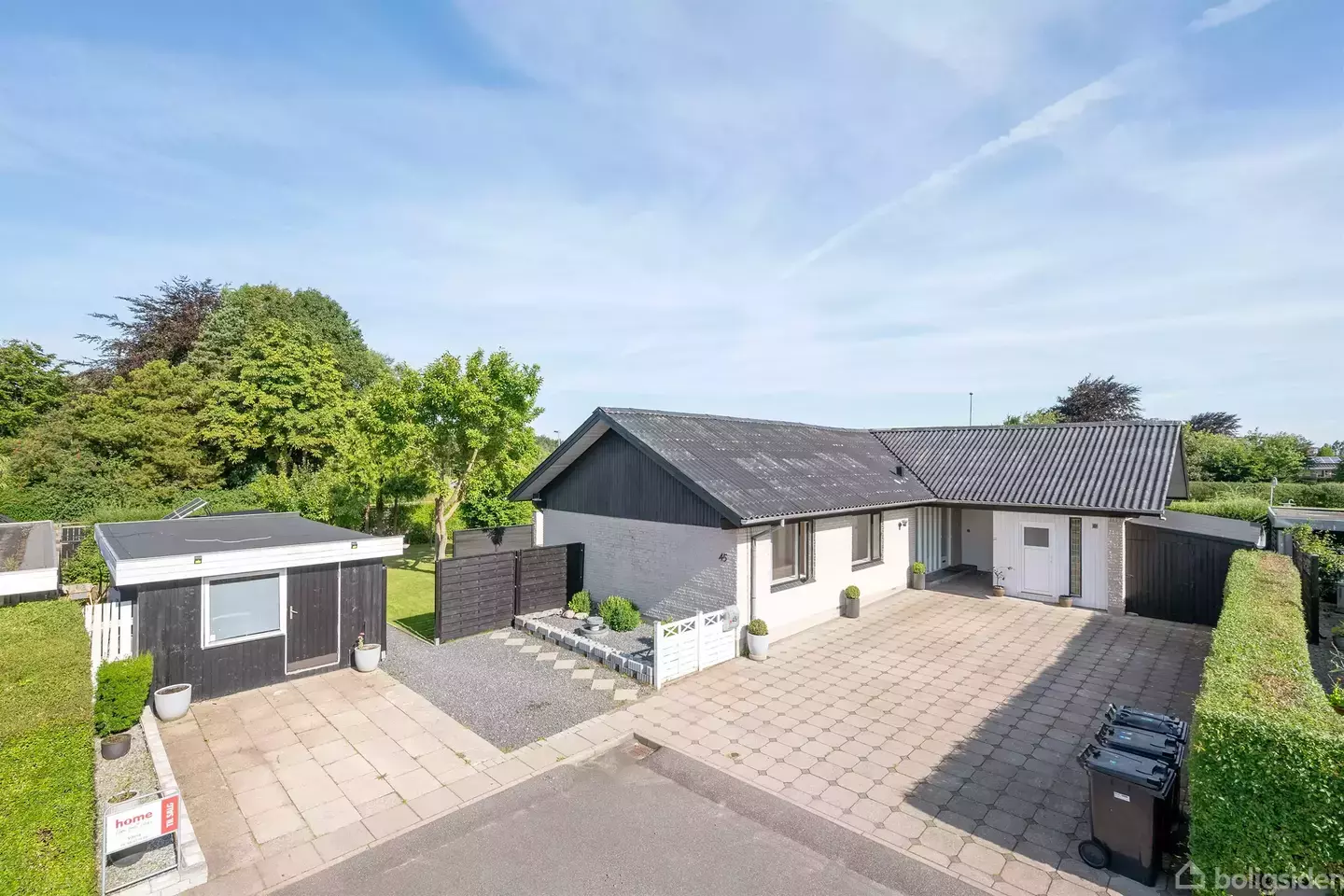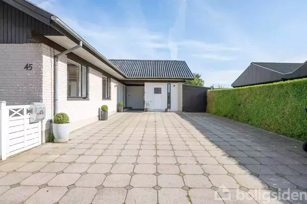 Velkommen til Rismarken. Vi har nu fornøjelsen af at udbyde denne flotte etplansvilla. Her får I 163 m² bolig beliggende for enden af lukket vej i et sikkert og trygt kvarter. Fra boligen er der under fem minutters gang til skole, og indkøb kan også nås på den anden side af Agerlandsvej. Indvendigt bydes I velkommen i en stor entré, herfra er der adgang til gæstetoilet, værelsesafdeling, stue og køkken. Køkkenet er i lyse elementer og fremstår særdeles rummeligt, her er plads til familie-tid