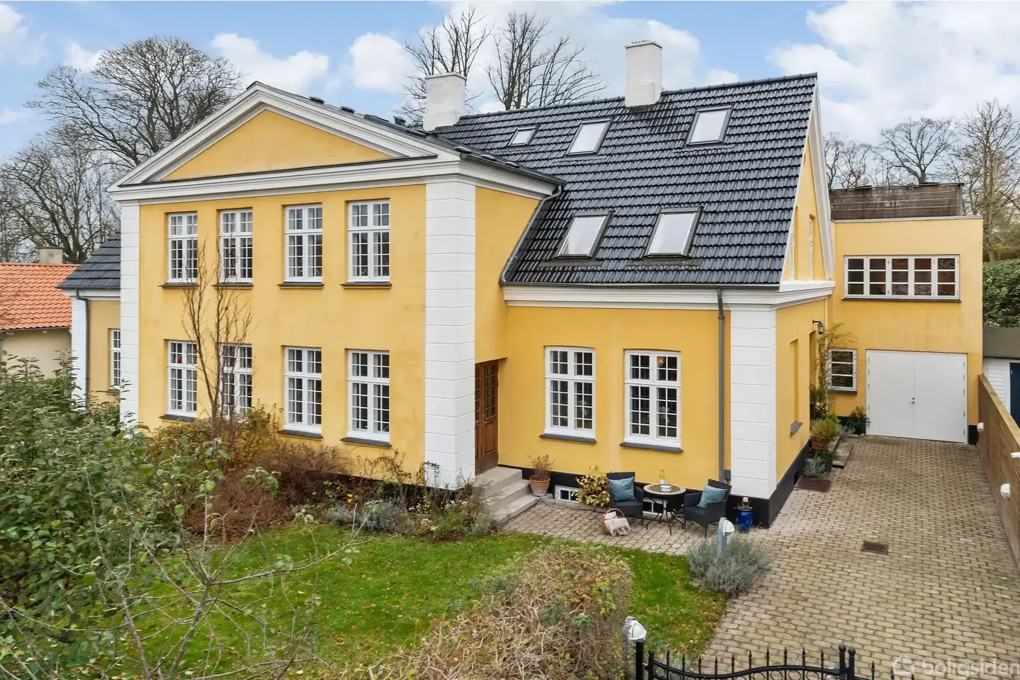 Ikke langt fra noget som helst og tæt på alt det bedste i Roskilde ligger et halvt dobbelthus delt vertikalt. Vejen er Roarsvej, hvor sagnet fortæller, at Roar var fra Skjoldsungernes land og konge i Danmark. Huset er bygget i 1904 af enkefru Pedersen og hendes søster. Altså en halvdel til hver bygget med tyk, lydisolerende væg mellem de 2 boliger. Ugeneret Med 244 m2 plus over- og underetage er det et stort dobbelthus, mangel på plads er derfor ikke en agenda for familien med børn. Og hør lige: Grunden er ikke stor, bare 341 m2. Til gengæld har den egen havelåge til Roskilde Bypark med en mindre hær af gartnere, som sørger for, at alt står snorlige. 25 meter fra huset er der et offentligt motionscenter i byparken. God fornøjelse. Har man energi til mere, kan man gå en tur på 30 kilometer gennem park og skov, så er dagens motions vist hjemme. Der er sol på terrassen hele dagen, her kan man ligge ugeneret og slikke sol med en krimi på maven. Udsigten over byparken bliver ikke bedre. Toget kender turen Beliggenheden i Roskilde bliver heller ikke bedre. Der er bare 4 minutter til havnen, til institutioner og gode skoler, stationen, indkøb og Danmarks første, røde murstensbygning, Roskilde Domkirke. Og så er byen selvfølgelig en moderne by med gågade til dem, der ikke kan undvære butikker, restauranter og caféer. Turen til København er en togtur på 20 minutter. Toget kender turen, for det første tog i Danmark kørte fra Roskilde til København i 1847 med H.C. Andersen, som var forfærdet over farten.