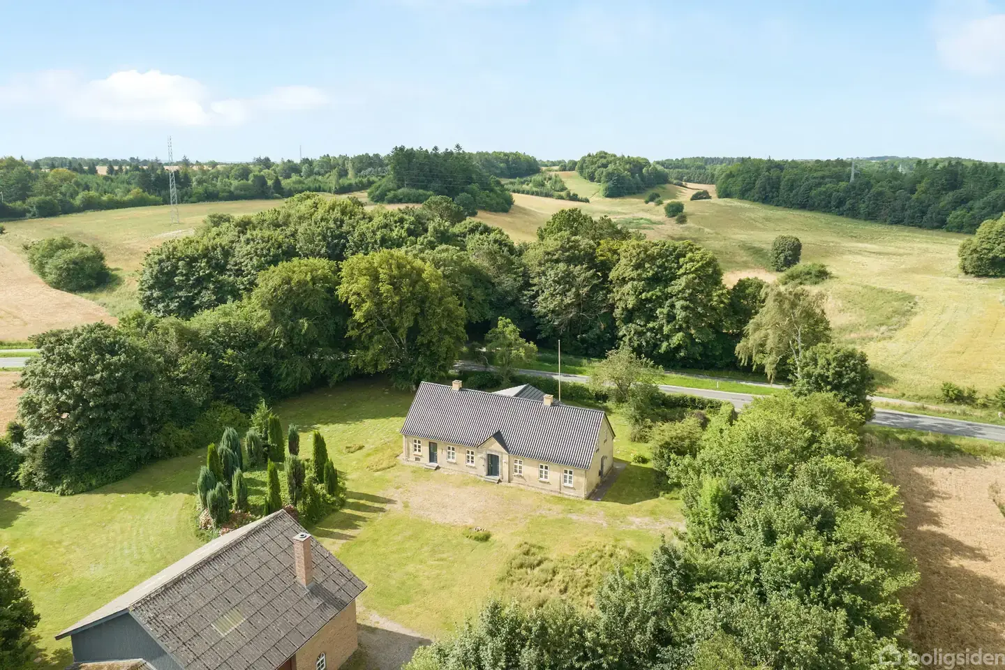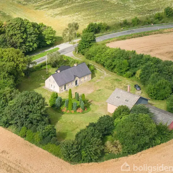 Velholdt landejendom med skov, sø og jagt nær Hornslet – kun 20 min. fra Aarhus. Med en sjælden kombination af mark, skov og naturskønne omgivelser byder denne ejendom på i alt 49,54 ha. jord nær Hornslet på Syddjurs. Ejendommen ligger ugeneret og smukt placeret i det let kuperede landskab, omgivet af åbne marker og egen skov med både vandløb, mose og en idyllisk sø. Beliggenheden er samtidig yderst praktisk – blot en kilometer fra Hornslet by, hvor man finder både skole, daginstitutioner, et