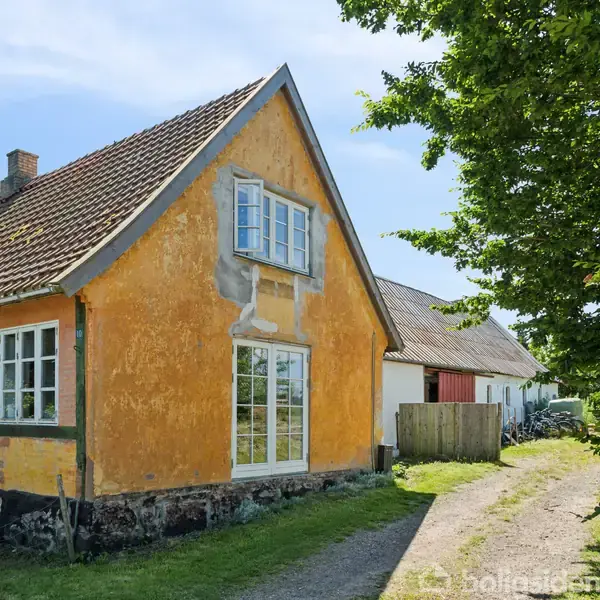 Charmerende villa på stor grund i Rø Det er i dejlige omgivelser i Rø, at I nu kan flytte ind i denne charmerende villa, der med sin bindingsværksfacade skaber karakter og stemning. Huset har 132 m2, der fordeler sig over én etage, mens I udenfor får en helt fantastisk stor grund på næsten to hektar med brugbare udbygninger. I kan komme indenfor enten via entréen eller det rummelige bryggers med fine opbevaringsløsninger og plads til vaskefaciliteter. Videre når I køkken-alrummet, hvor køkkene