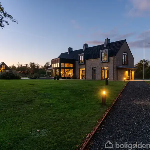 Det er en sjældenhed, at man kan få både naturen helt tæt på og samtidig gå til byens faciliteter. Ikke desto mindre er det tilfældet for denne ejendom, der ligger lige på kanten af Vildbjerg og også omfatter lige over 22 hektar jord, hvoraf en andel er en fredskov. Det er Søren Andersen Arkitekter i Holstebro, der har tegnet villaen, som troner på den dragende grund, og det har de gjort med fuldt fokus på, at man skal mærke, at naturen bliver trukket helt med ind i hjemmet. En naturpræget ejen