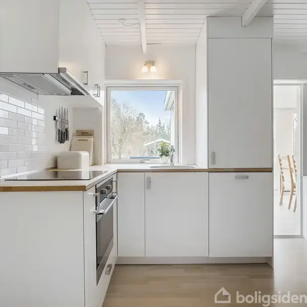 Åbent hus med tilmeldingskrav 2/2 - klik på billede - HYGGELIGT FRISTED MED SOLRIG HAVE OG GOD STOR UDESTUE- og skøn beliggenhed Højt til loftet og nemt at gå til – sådan kan dette sommerhus bedst beskrives – og sådan opleves det også. Køkkenet er i åben forbindelse til stuen og der er integrerede hvidevarer (køleskab og opvaskemaskine). Det praktiske gulv gør at huset kan tåle at blive brugt – når man som sommeren går ind og ud mellem hus og have. Den store og lyse udestue på 18 kvm bidrager til at trække varmen ind i sommerhuset og er fin forøgelse af de andre gode kvadratmeter i huset. Huset er gedigent og solidt – og der er et relativt lille behov for vedligehold. Husets kvadratmeterfordeling er fin; køkken og stue er i åben forbindelse, og her er selvfølgelig brændeovn, så I kan nyde efteråret med ilden buldrende lunt og hyggeligt. Badeværelset er ikke stort, men godt indrettet. Der er entré og to værelser med i alt 4 sengepladser. Den lille overdækning ved fordøren fungerer både som et godt sted at tage tørskoet imod gæster – og grillplads. Det indbyggede udhus kan måske endda ses som muligheden for at lave et lille ekstra køjeværelse – men man skal bestemt ikke underkende funktionen i dag – nemlig som ekstra og god opbevaringsrum med vaskemaskine. Grunden er solrig og lukket - og I er godt skærmet mod omgivelserne, og kan indrette en ret fantastisk oase med bålplads og mulighed for leg, sommeraftener på terrassen og hyggelige og nærværende dage under åben himmel. Hou, havnen og byens små gader og stræder kan I cykle til, og så kan I jo jævnligt stoppe op ved den dejlige børnevenlige badestrand som alligevel er lige på vejen. Stor dobbelt carport med indbygget udhus. Tilkoblet offentlig kloak og fibernet.