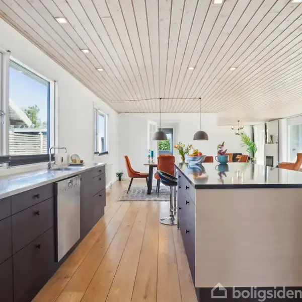 Indflytningsklar etplansvilla med rolig beliggenhed i Taastrup Det er på en lukket vej i Taastrup, at denne etplansvilla er placeret, som nu kan blive jeres. Boligen fremtræder indflytningsklar, og indenfor venter 180 m2. Entréen åbner til køkken-alrummet og stuen, som er samlet i ét rum. Køkkenet er stilrent og beriger med gode opbevaringsløsninger samt de nødvendige hvidevarer. Det er desuden værd at bemærke de mange vinduespartier, som sikrer et skønt lysindfald. Videre venter fire værelse