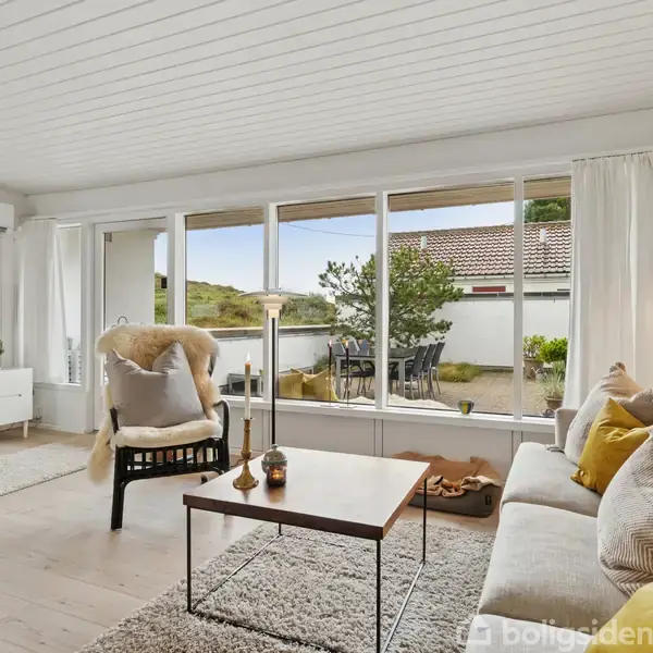 Forestil dig at køre ad de snoede veje gennem klitlandskabet, hvor marehalmen svajer i vinden, og lyden af Vesterhavet kun er få minutters gang væk. Her, på Rødhus Klitvej 354, venter et fritidshus, der ikke blot er et hus, men et tilflugtssted. Et sted, hvor hverdagen slipper taget, og roen langsomt sænker sig. Ejendommen fremstår solid og indbydende, velholdt og passet med omhu. Allerede når du træder ind, mødes du af en rummelig entré med god plads til overtøj og sko – en praktisk detalje ef