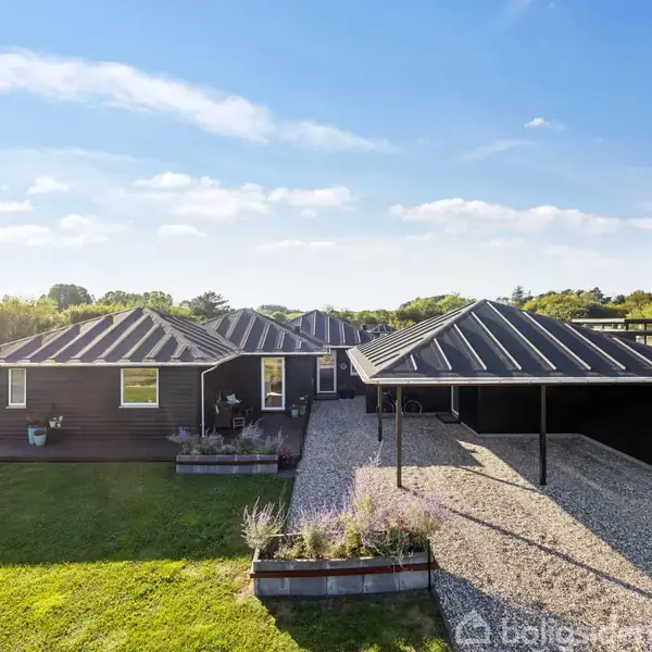 Velkommen til Rødkløvervej 17Midt mellem skov, strand og feriebyer. Turen går til østkysten og Kattegat, hvor feriestemningen er høj og sommerhuset fra 2021. Det betyder moderne komfort og lyse fornemmelser, mens den store grund forsyner jer med sol og afslapning i lange baner. Mellem Hou og Hals. Området mellem feriebyerne Hou og Hals er én lang strækning af langsomme tempi, grønne udsigter og lækker badestrand. Jeres sommerhus putter sig trygt og godt midt i det hele, på en lukket vej og med