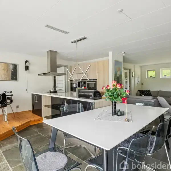 Plads og familieliv lige ved Limfjorden Intet mindre end 290 boligkvm på en 9.292 kvm stor grund venter den store familie få hundrede meter fra vandet og Røndbjerg Lystbådehavn. Limfjorden bliver jeres nabo! Herhjemme er der plads til 19 overnattende! Husets mange kvm fordeles på to flotte, renoverede og vedligeholdte etager med fire værelser, en stue og et stort brusebadeværelse på 1. sal og endnu fem værelser, tre stuer, to badeværelser, et gæstetoilet og et bryggers i stueetagen. Plads og v